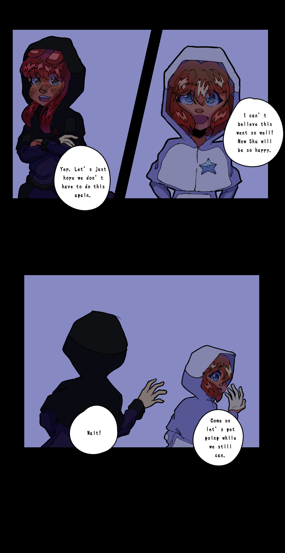 Thank you for seeing the two parts. I hope you enjoy it. I wasn’t expecting the chapter to be this lengthy.😅 But at least I got to learn how many panels I should work for my comics. And let me know what you think of it.