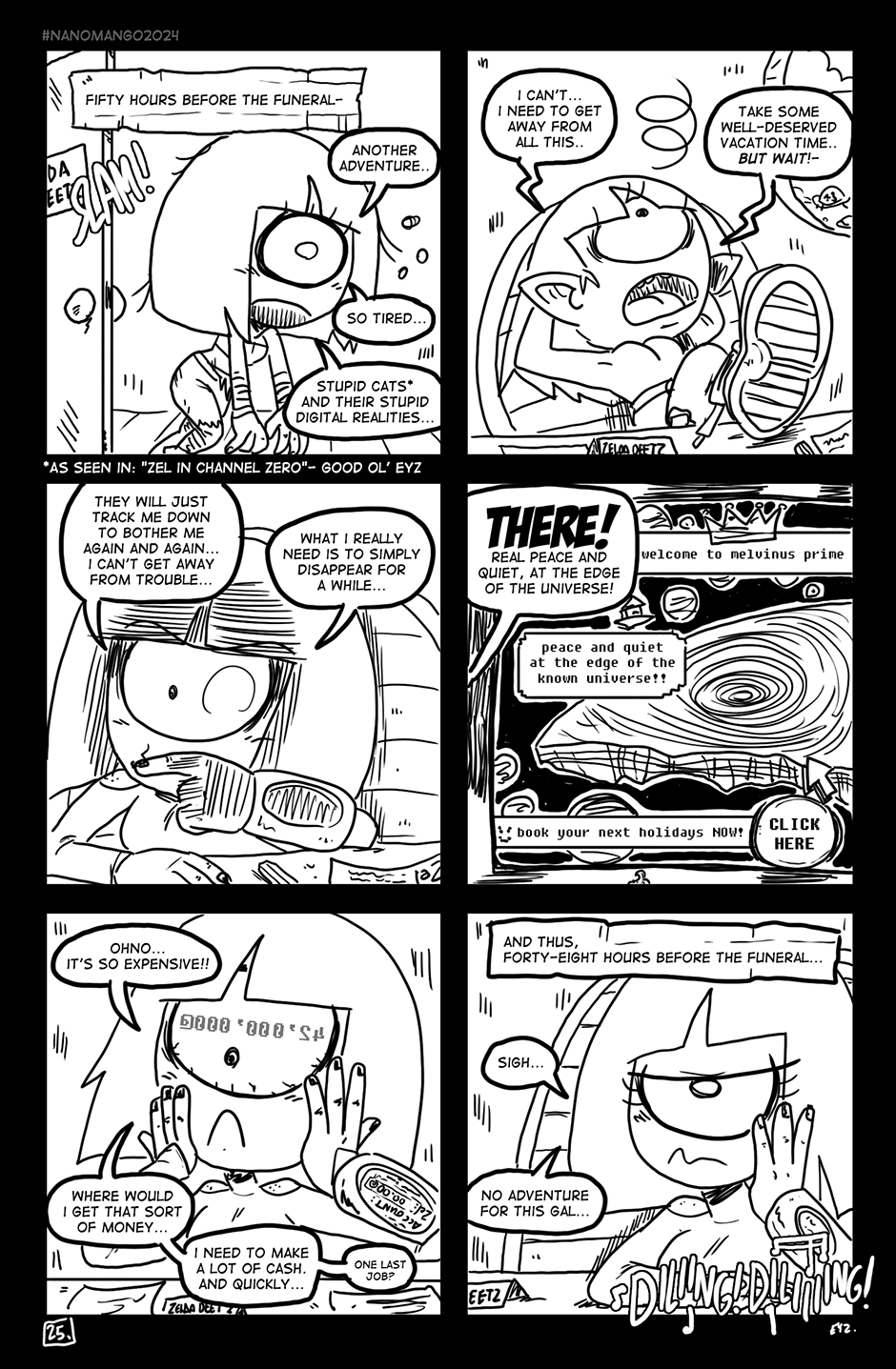 Eyz' NaNoMangO 2024 ======= Zel in... "The Death of ZEL" Enjoy the read! = Time for a brand new NaNoMangO challenge! What is it? 30 days. 30 pages. One page a day. Find the FAQ here: http://nanomango.livejournal.com/ and the official tumblr page over here: http://mangogroove.tumblr.com/