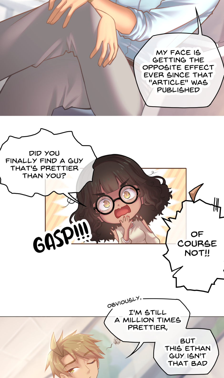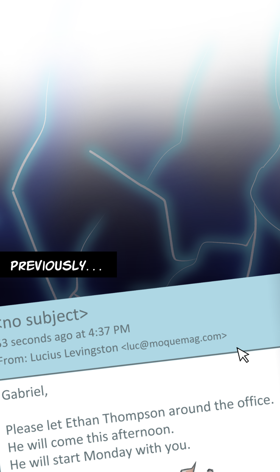 Ethan Thompson, a cocky private investigator hired by the CEO to find who started the story, takes a liking towards the former model as he digs for information.