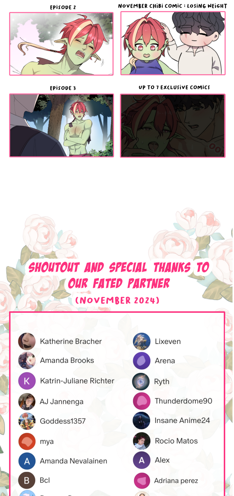 My Sassy Goblin is entering Episode 2 at the end of November. Thank you to everyone who has supported us on Patreon, as well as those of you who are still reading here. Episode 4 will be available for early access on Patreon this week. See you in 3 days!
