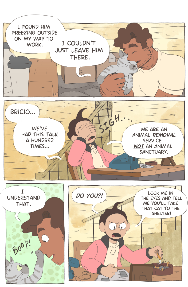 i can’t wait for this cat to be handed off to the shelter and never be seen again in this story :] mhm mhm yes. this is the last we’ll see of ‘em for sure!!! :]]