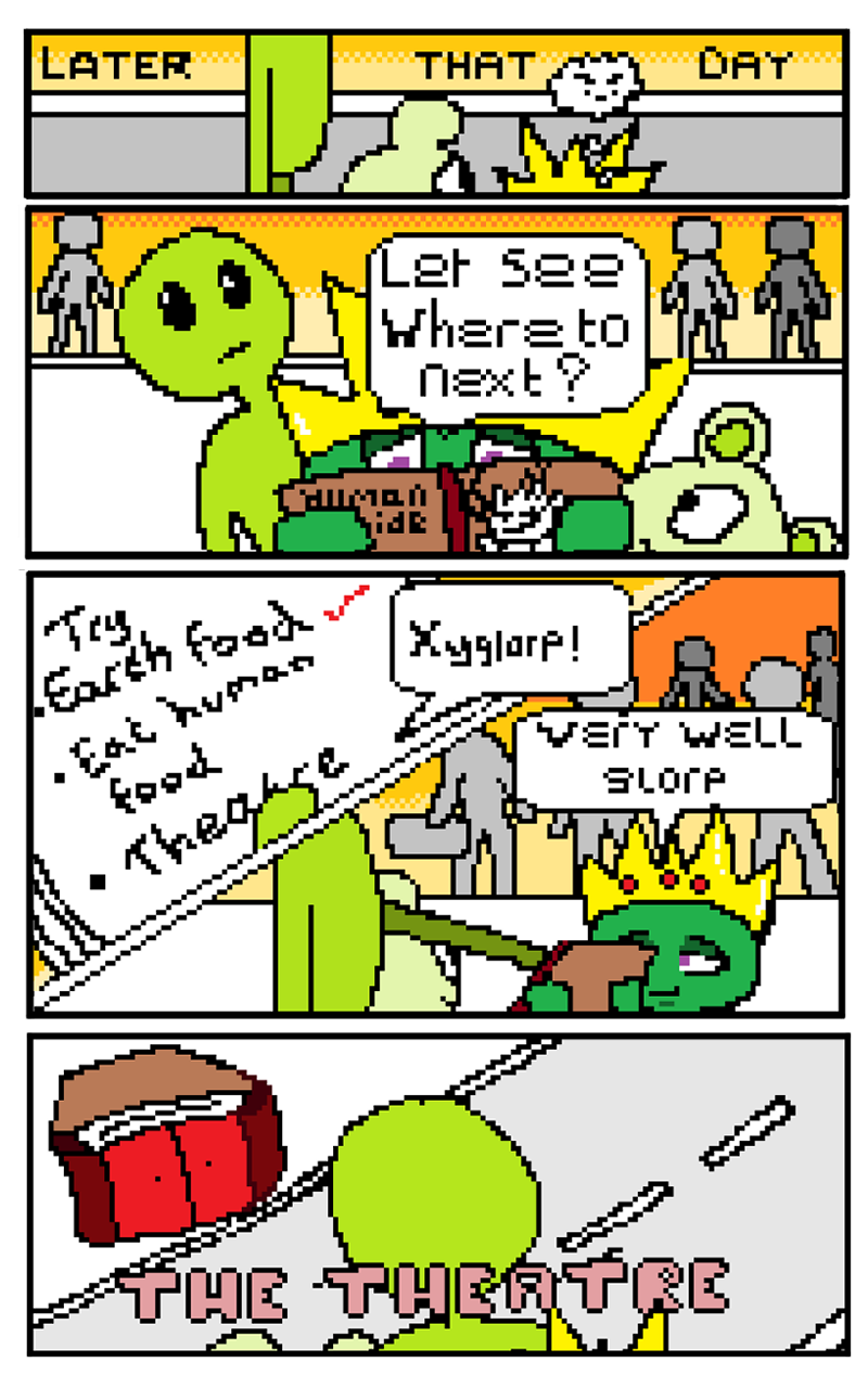 Three aliens including the great frog king come to Earth for a vacation, but instead they find themselves caught up in the world of acting. Each chapter is a new funny adventure as they try to make sense of life on Earth.