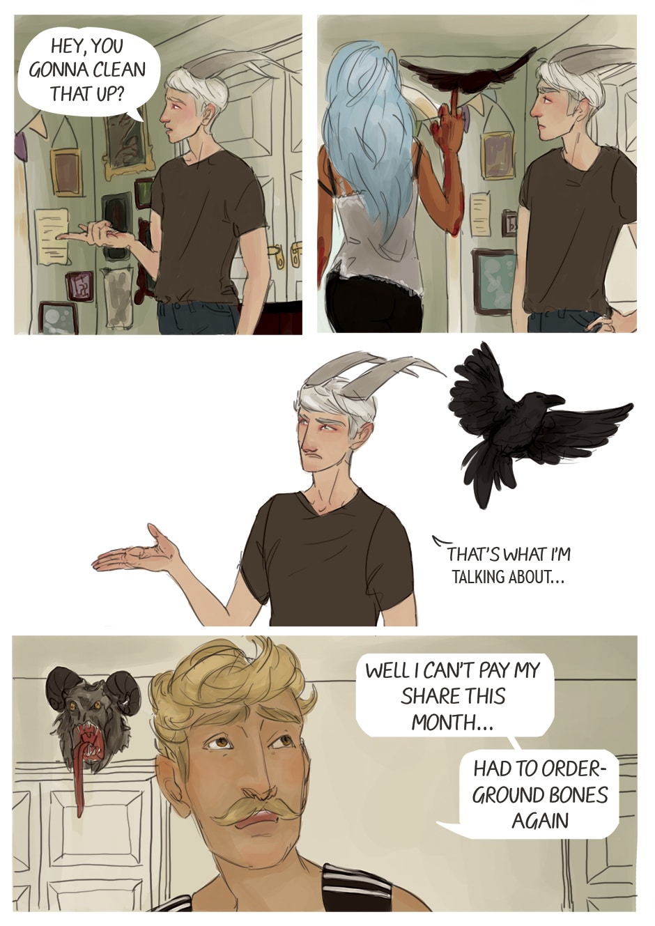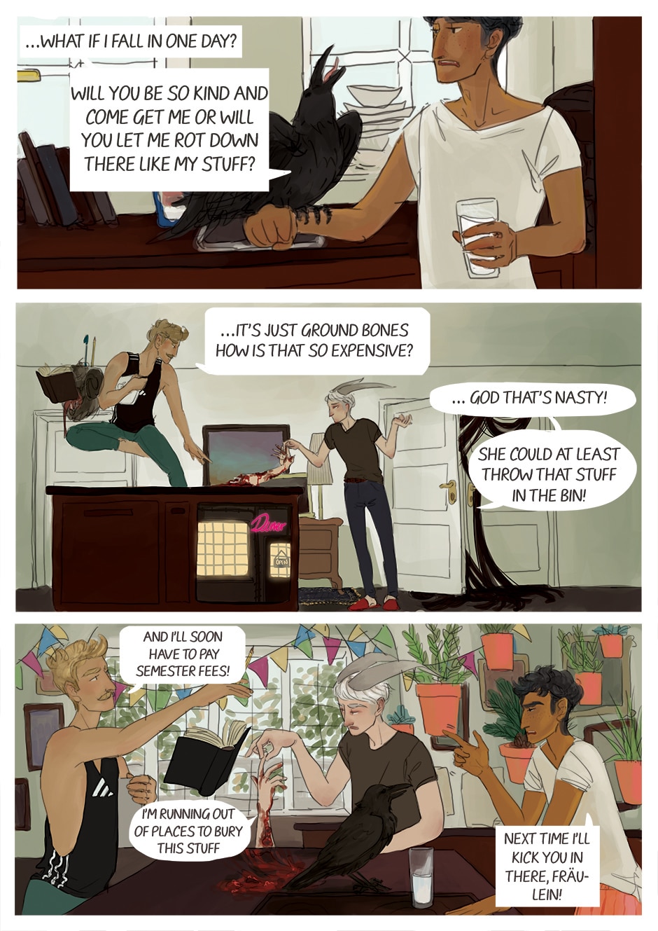 every day problems evolve when a vain witch, an overly tidy krampus, an apathetic leviathan and an exasperated human share a flat.