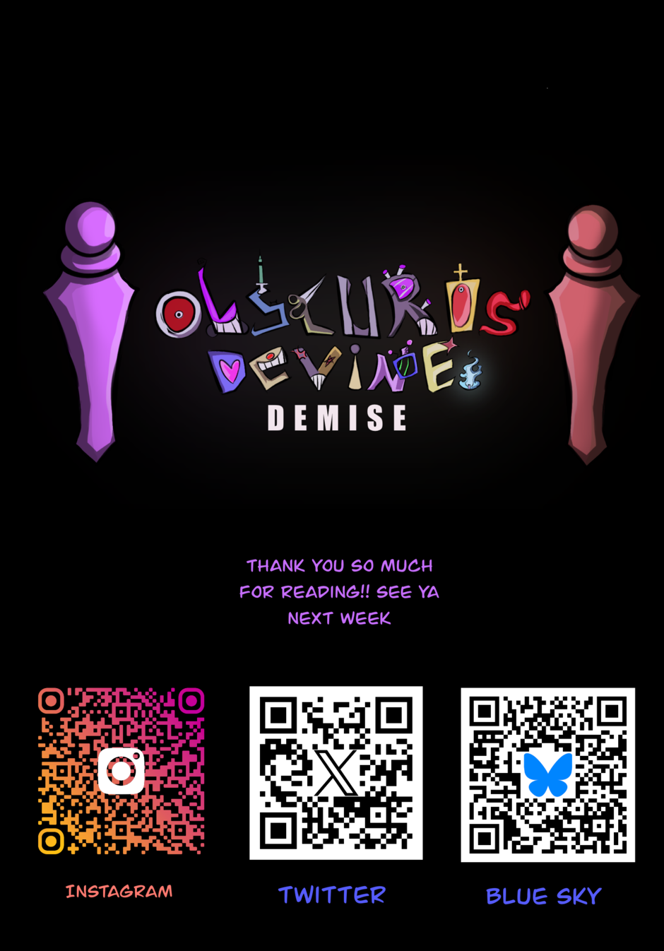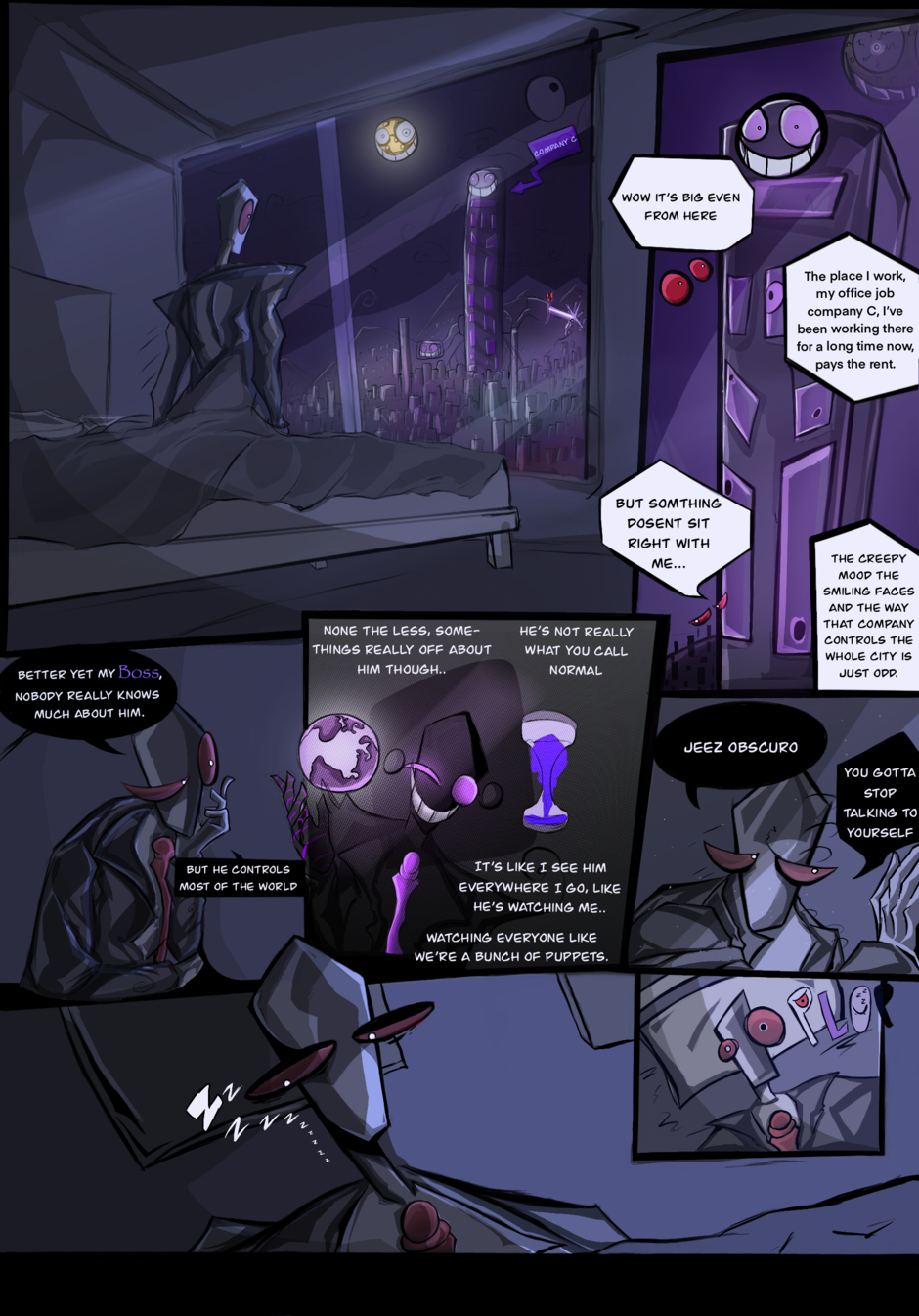 sorry for late update by a day also more pages will be regular in the future anyway, In this part of obscuros devine demise WE ARE GETTING A LITTLE EXPOSITION!!! to the world of obscuros devine demise and the evil crazy boss, who's name should not be spoken... as for now hehe more coming on him and the sins soon.... SEE YA NEXT WEEK have a great week :).