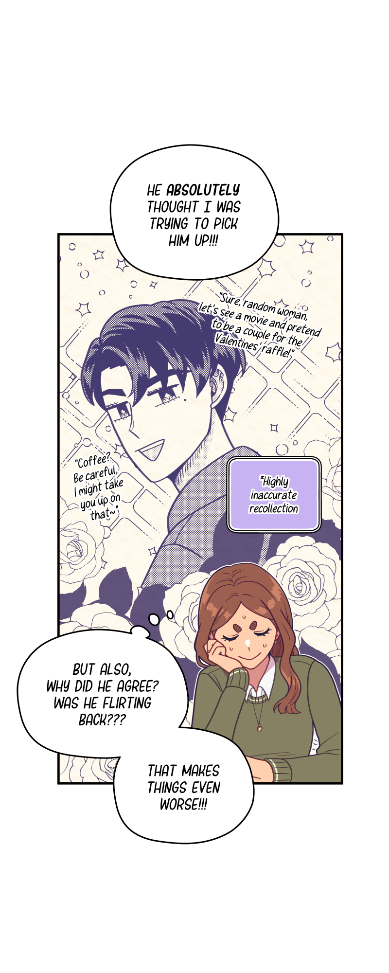 A (non) rom-com about two aromantic-asexual coworkers who, after an accidental meet-cute outside of work, mistakenly believe the other is in love with them.