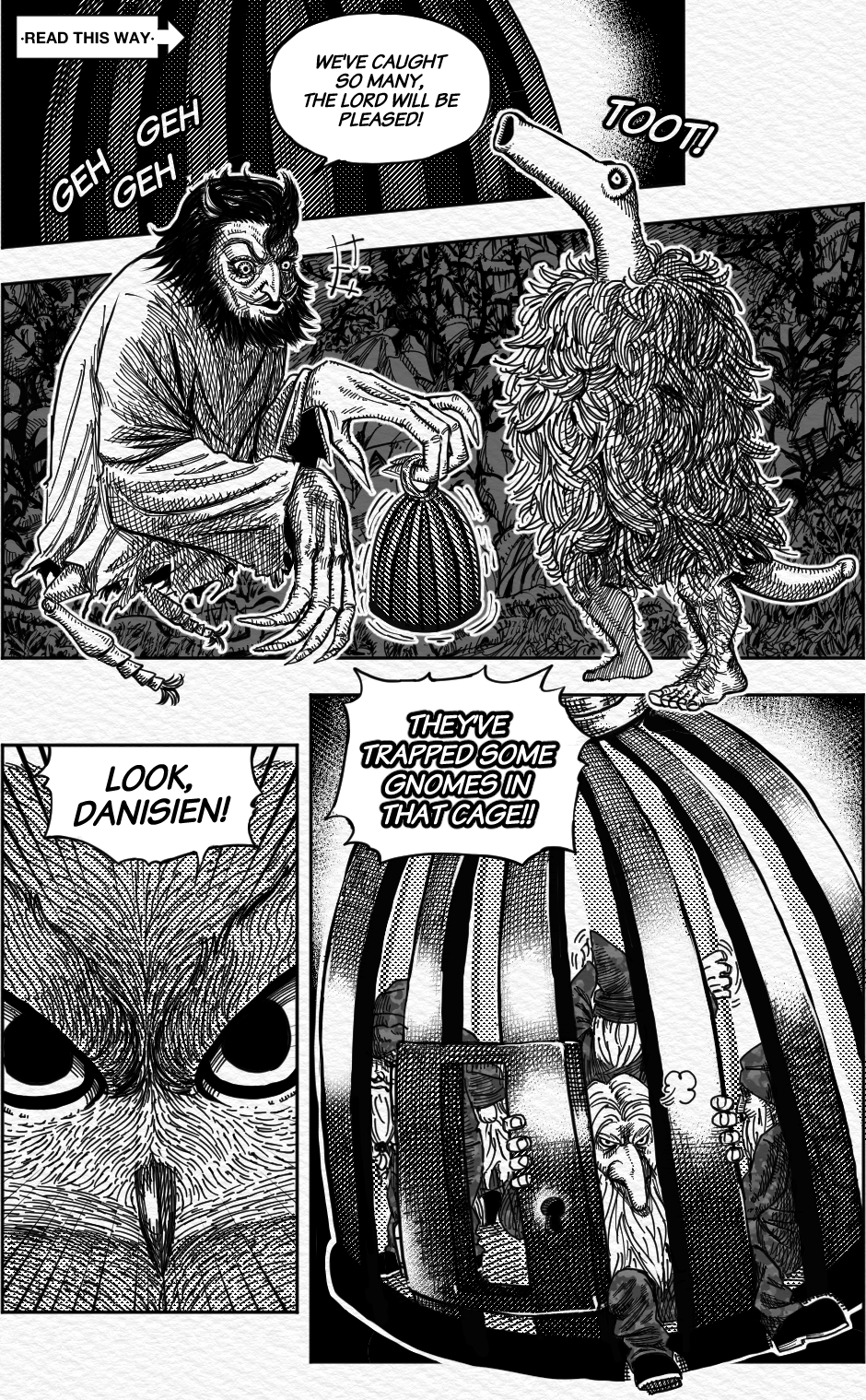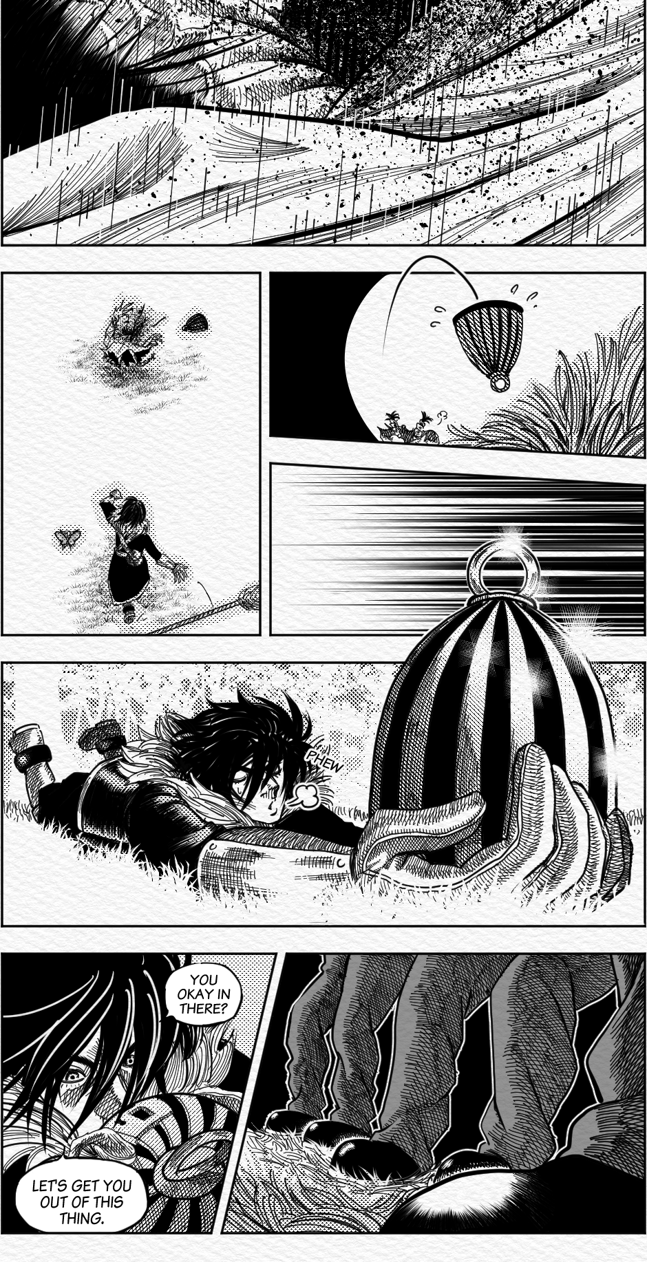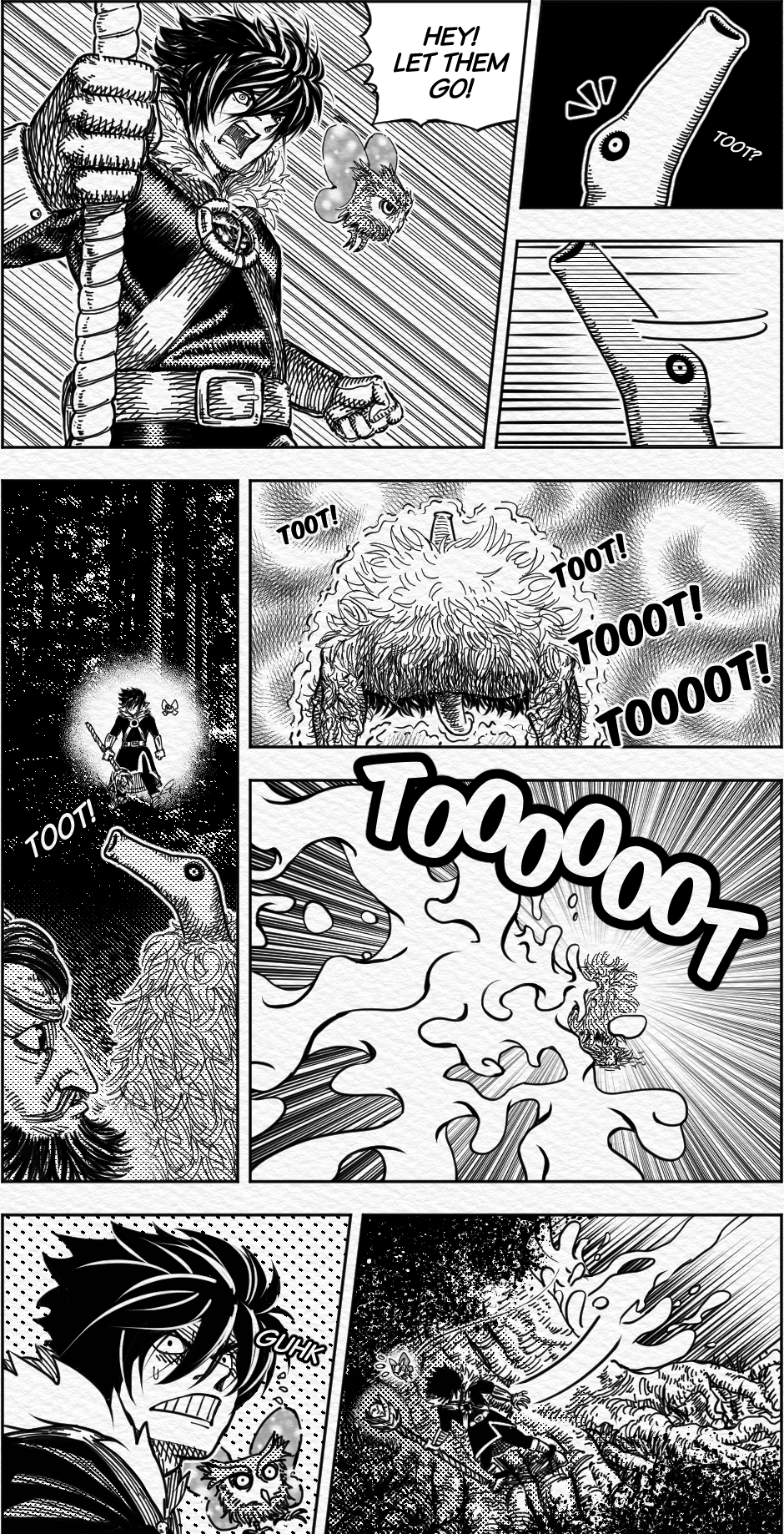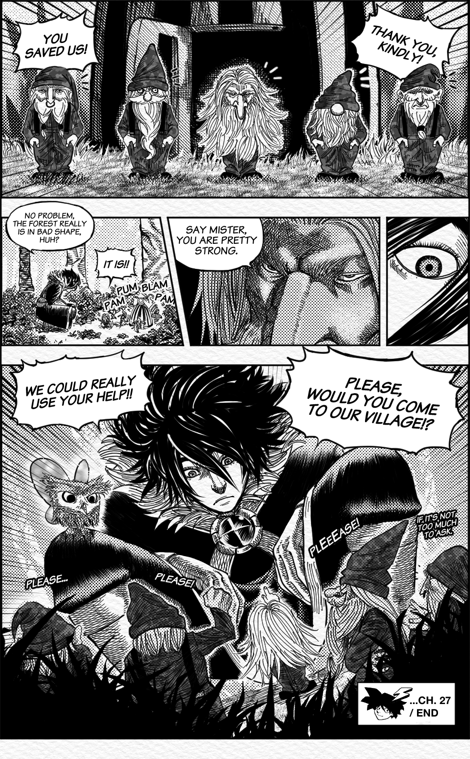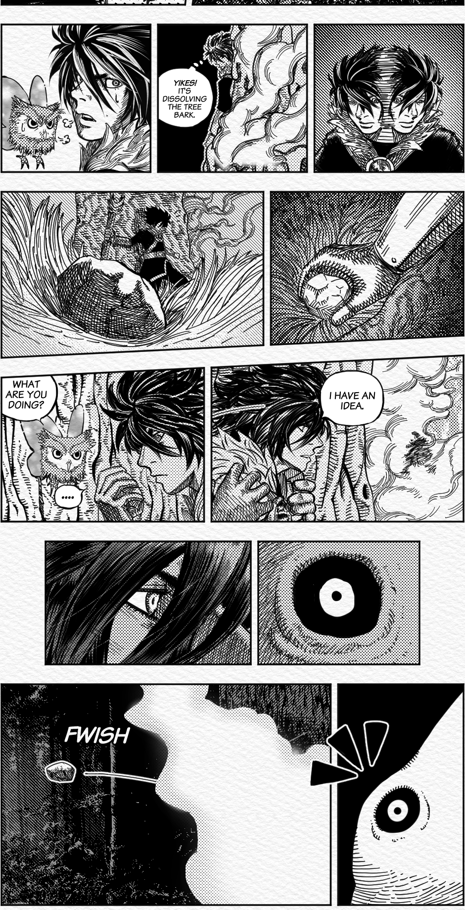 Wonderful cross hatching all in all, but what I'm really curious is how where you able to do that brush like effect on the lightning bolt, the fireball and the magic attacks, did you use a specific brush?