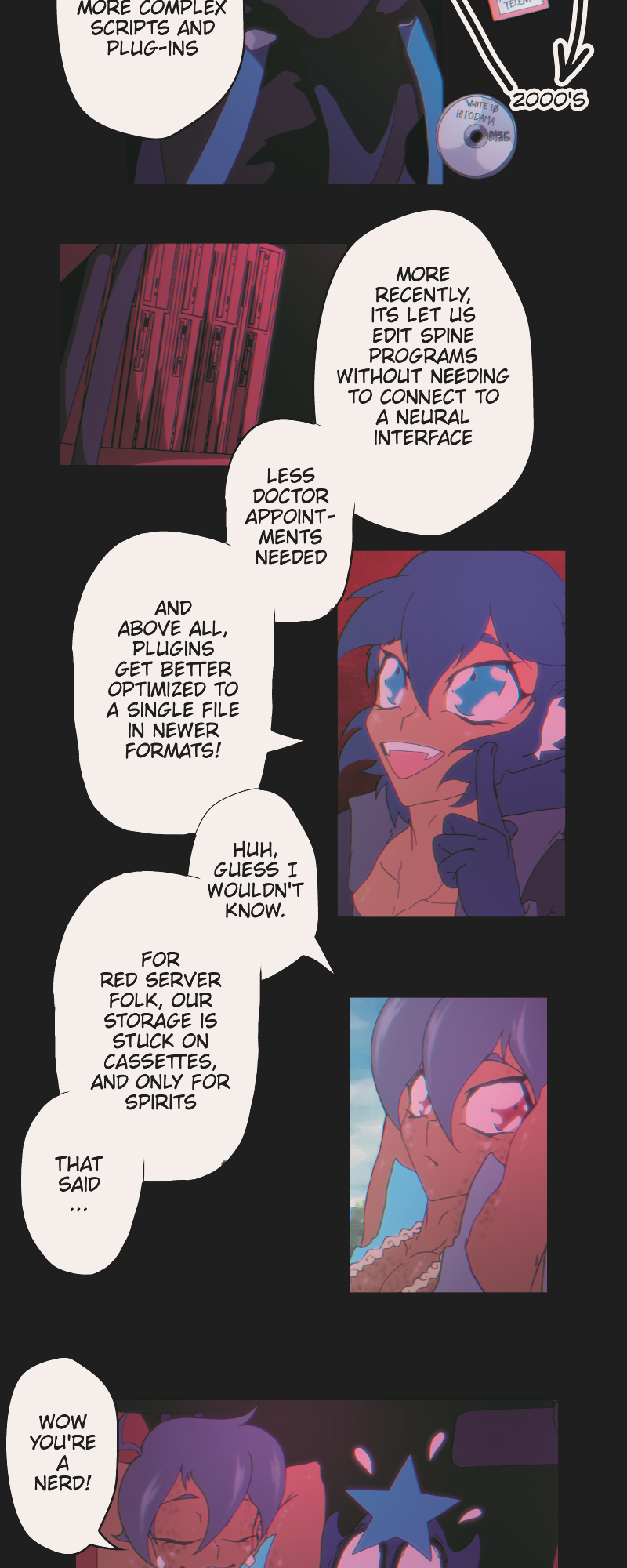 Anyway fun fact, the code on that punch tape can be read/translated to text! Also the spine names on each storage device are all important to the lore.