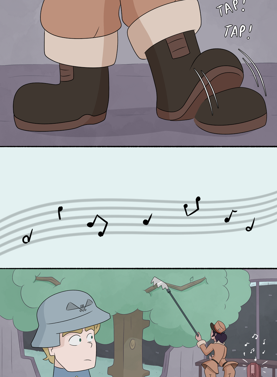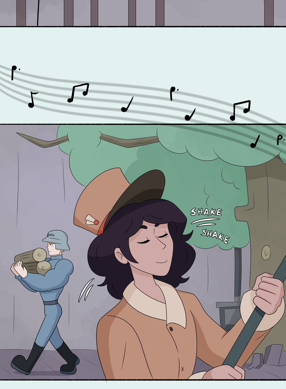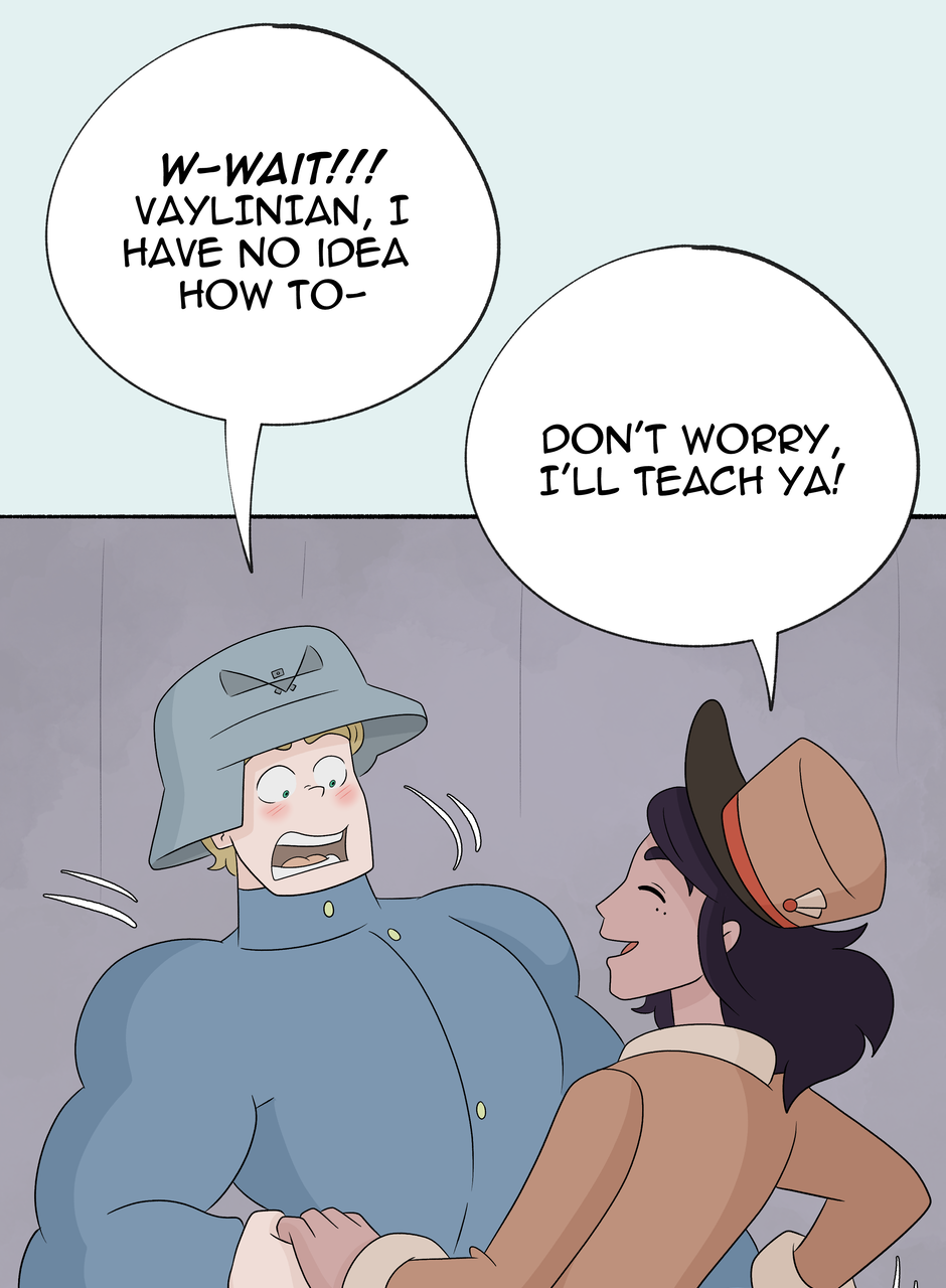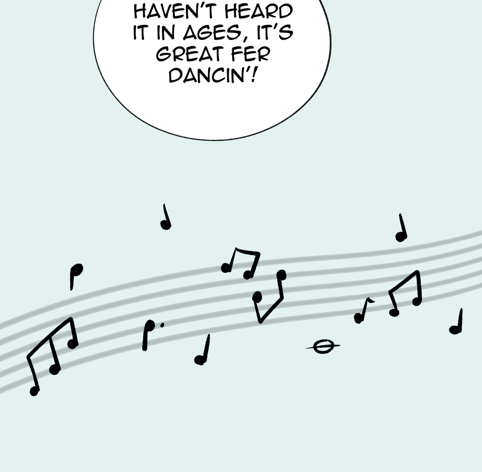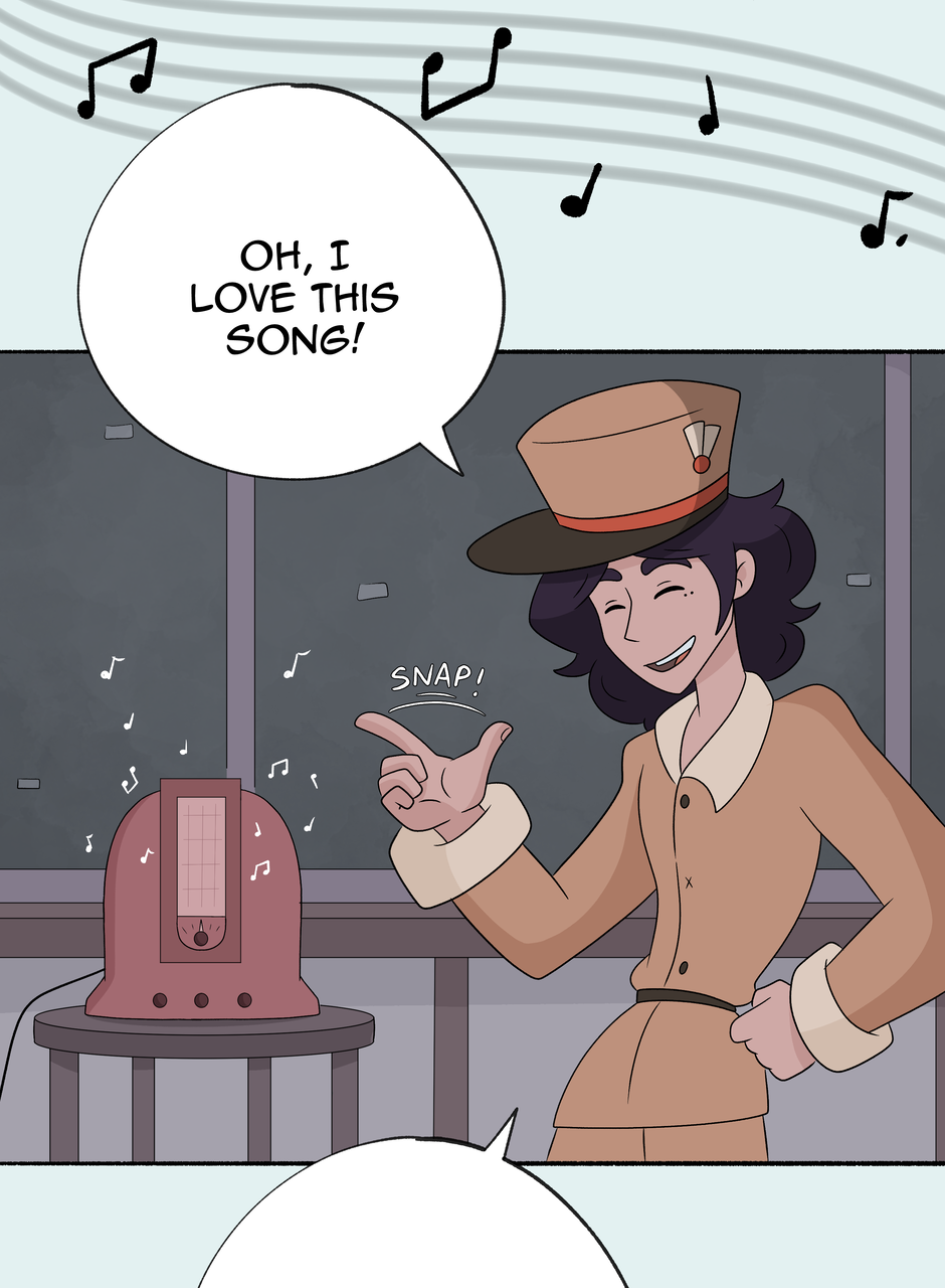 Dancing has begun! If you are wondering what kind of music they are listening to, it would be an upbeat dancing song from the 1920s-1940s (in Faroff I'm having the tech be both from ww1 and ww2 eras, so the music choice is a bit larger as well). But honestly, feel free to imagine any music you like that fits the scene! Next episode will be up December 23rd or you can read ahead on Patreon! <3