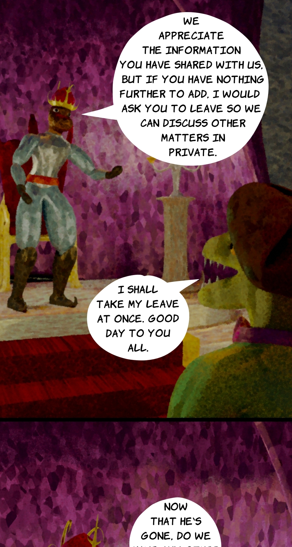 There is one final matter to discuss before their meeting ends.