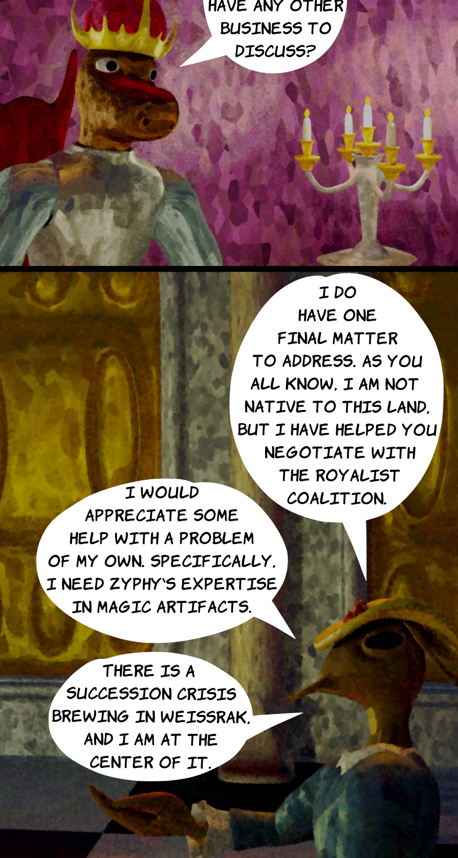 Roland has abandoned his position in the royal court, and now seeks to undermine the king in any way he can. With the help of his friend Zyphella, he hopes to secure a powerful magic weapon and keep it out of the King's hands.
