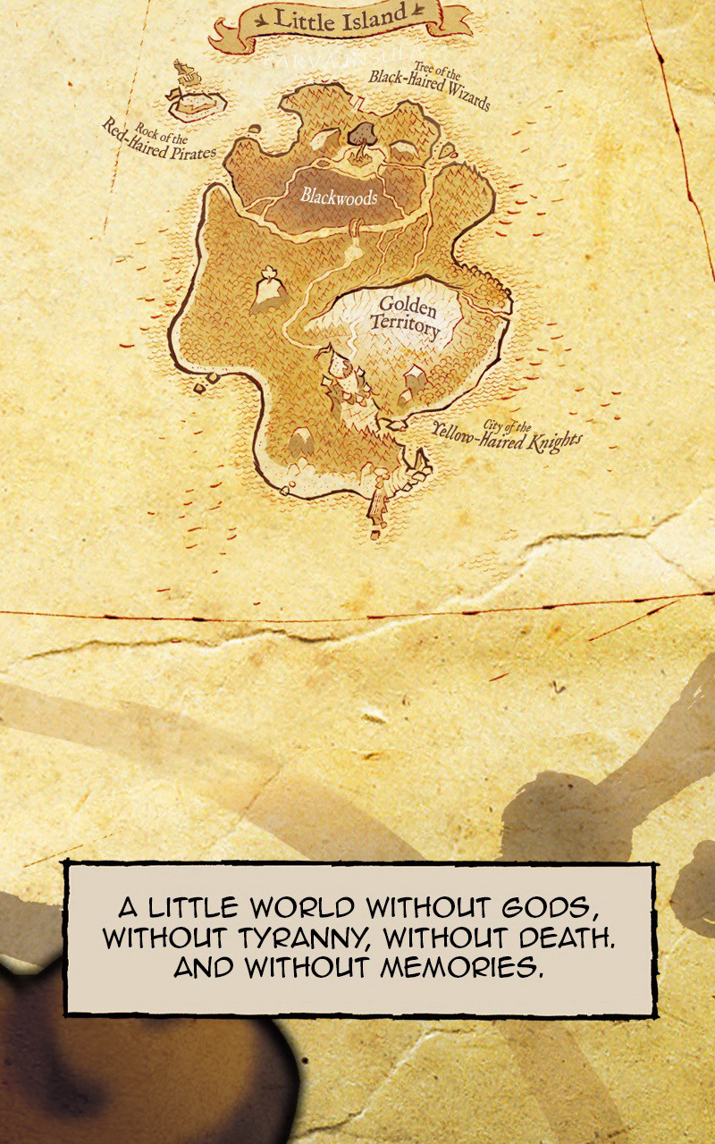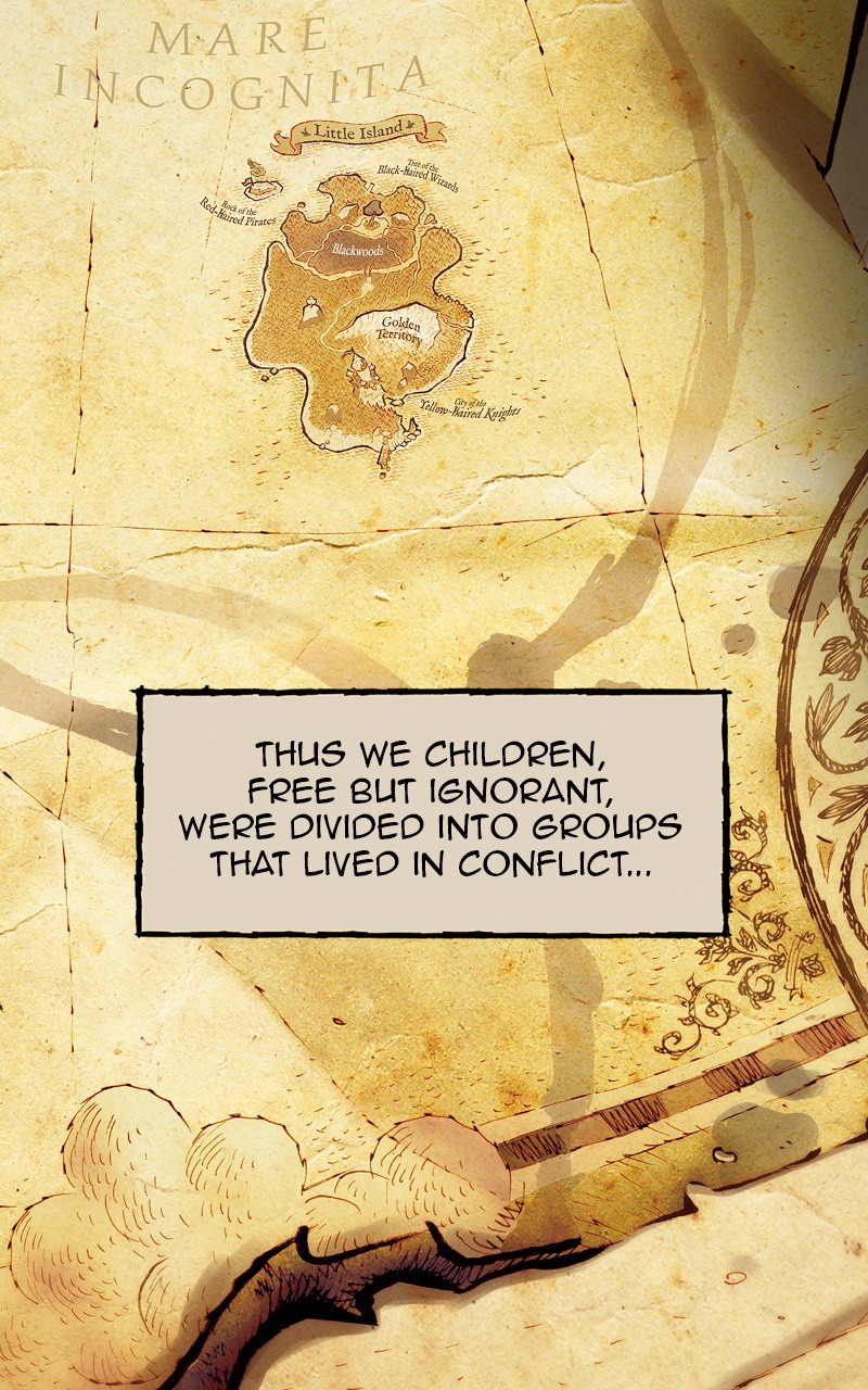 In this world, everyone is forever young, and death does not exist. Leo belongs to the Yellow-Haired Knights clan, at war with the Red-Haired Pirates and the Black-Haired Wizards. Leo has nightmares where darkness devours the world. Leo tells himself they are only dreams, but these dreams draw him into a web of secrets and betrayals. Disowned by his people, he will only find support in two of his worst enemies, a Pirate girl and a young Wizard. Tick, tack, the Darkness is getting hungry...