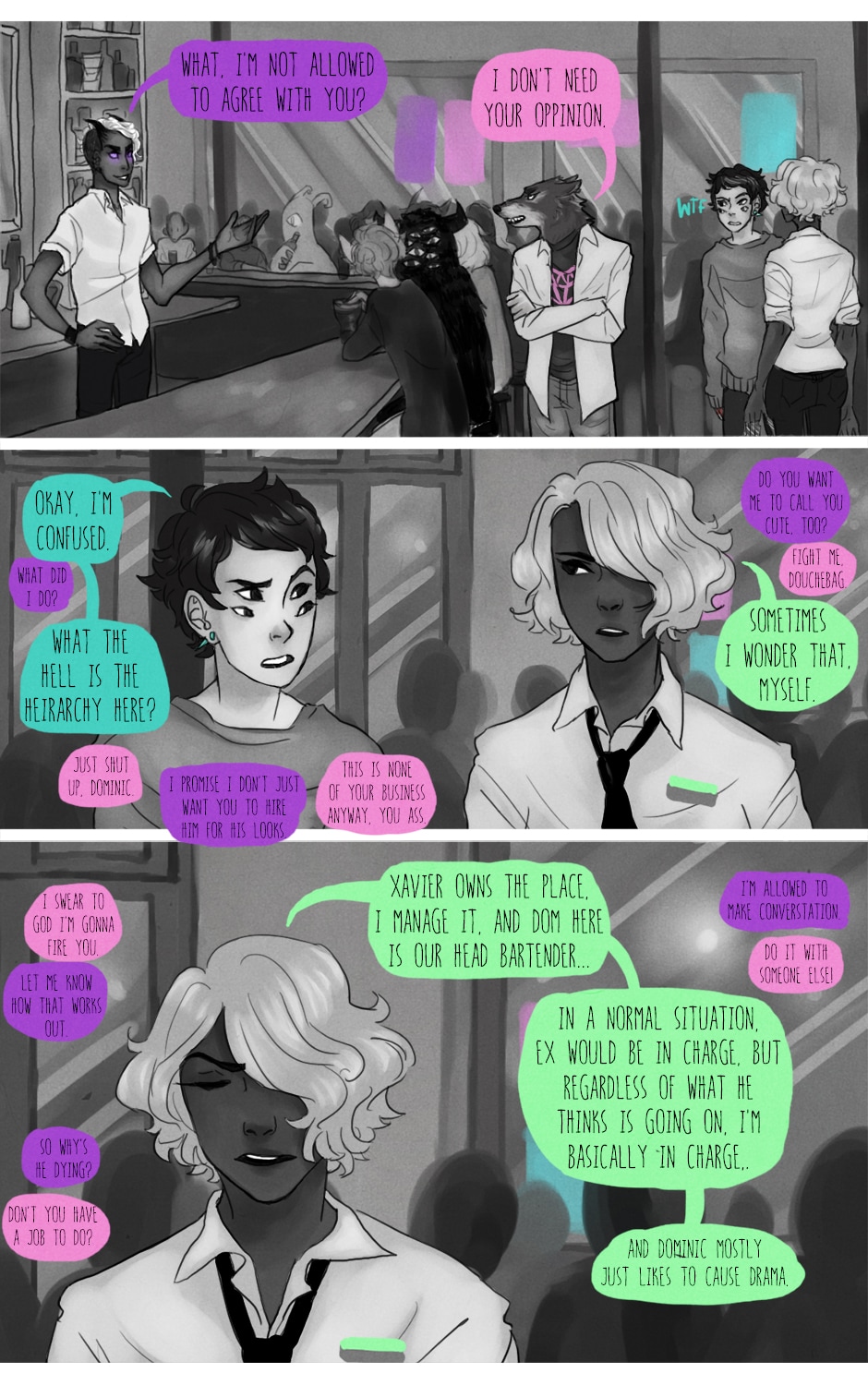 Xavier tries almost daily to fire Dominic tbh. But hey! my tablet cord has been replaced, and next week is SwarmCon!! If anyone is planning on going already or is going to be in the Savannah area that weekend, you should definitely come see me (and maybe buy some prints or MB related things)