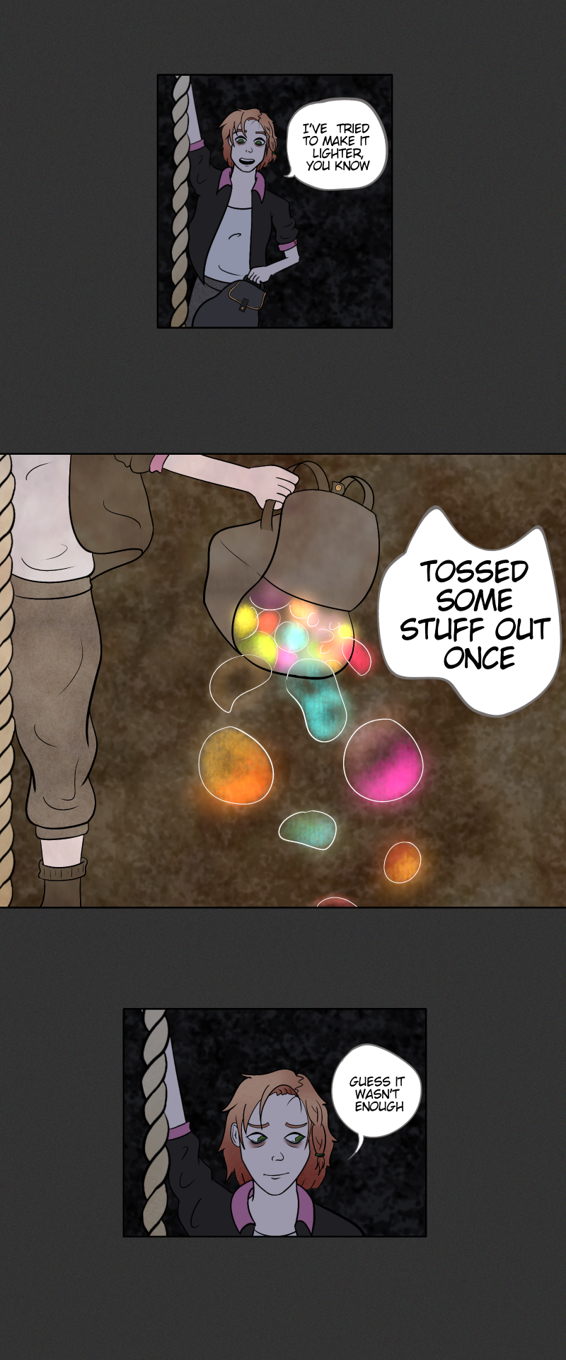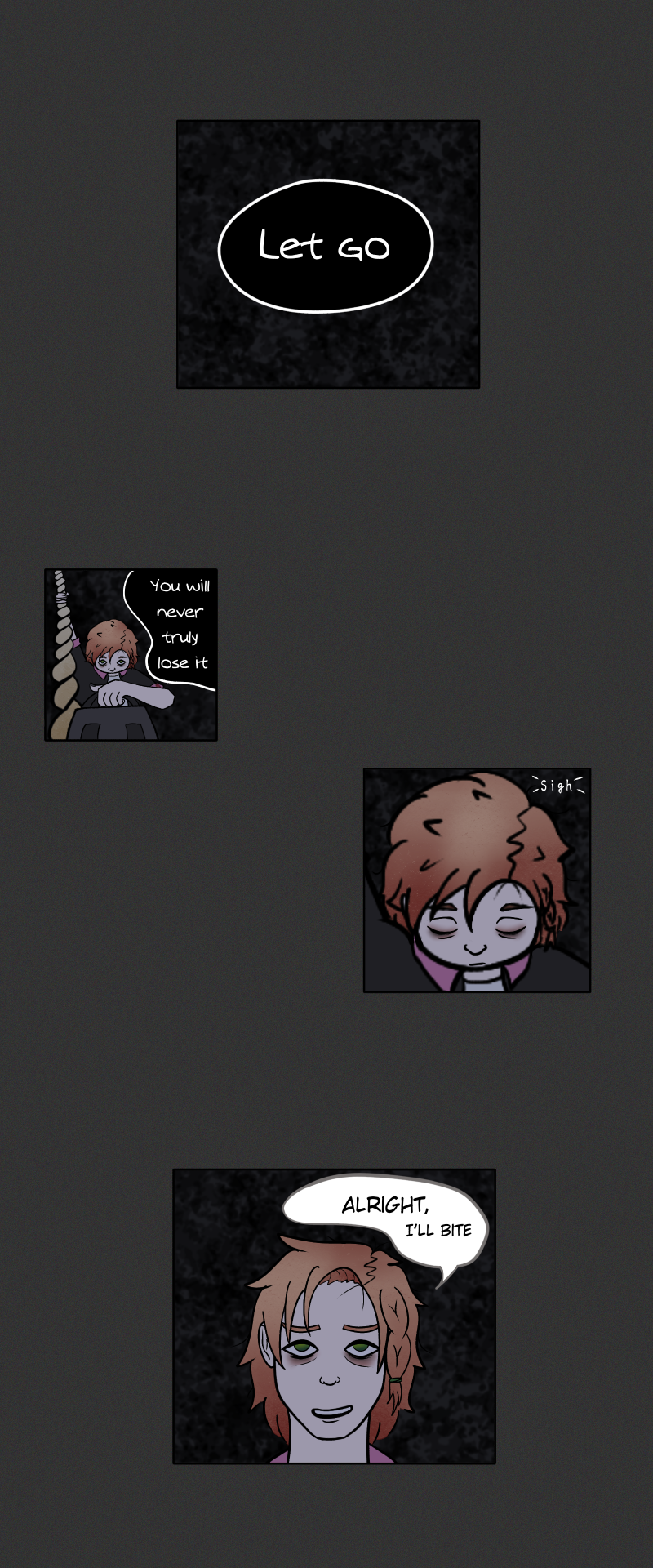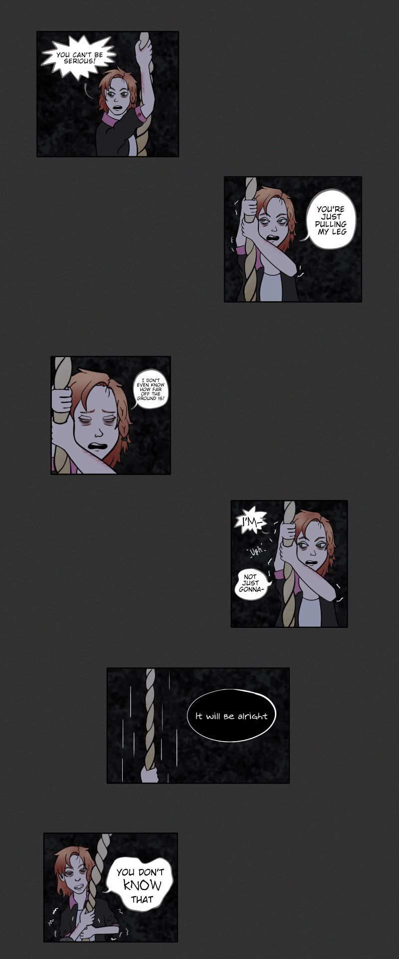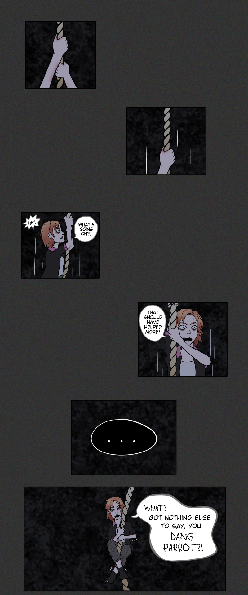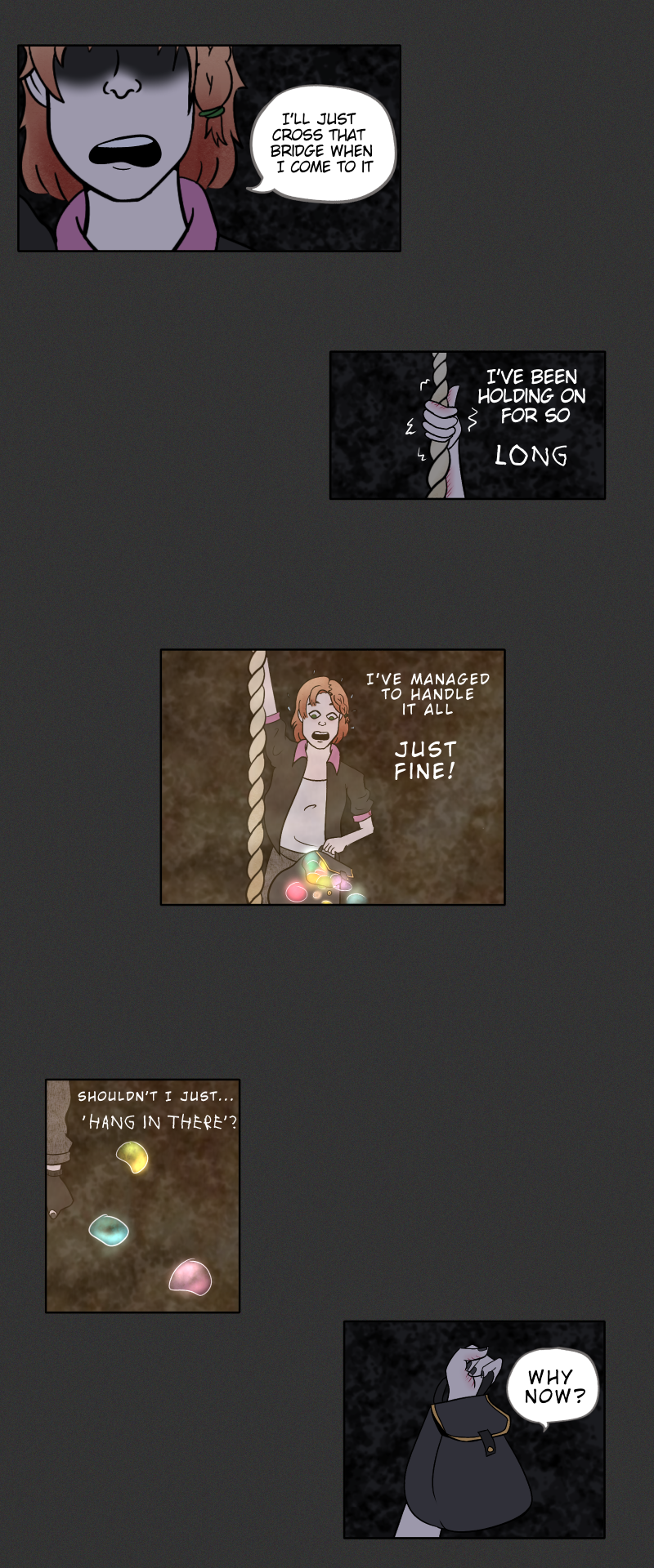 If you had to choose between the things you loved and the things you know you have to do, what would you decide? Would you discard your dreams and continue with your duties or seek out other options? Would you worry about the consequences of your choice? What would YOU do, if you've reached the end of your rope? -A comic based on the idiom, 'At the end of one's rope'