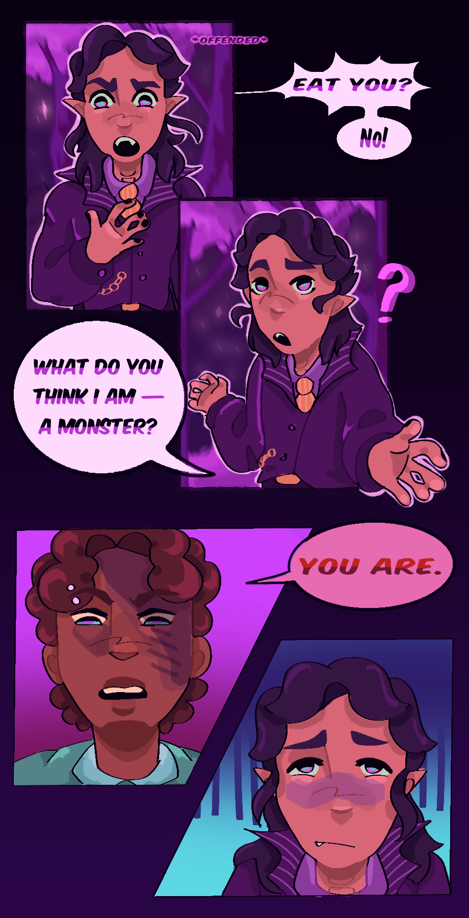 A vampire hunter is walking through the woods, ready to find his next kill when he is struck by the weirdest little vampire he’s ever met, who seems to want to be friends?