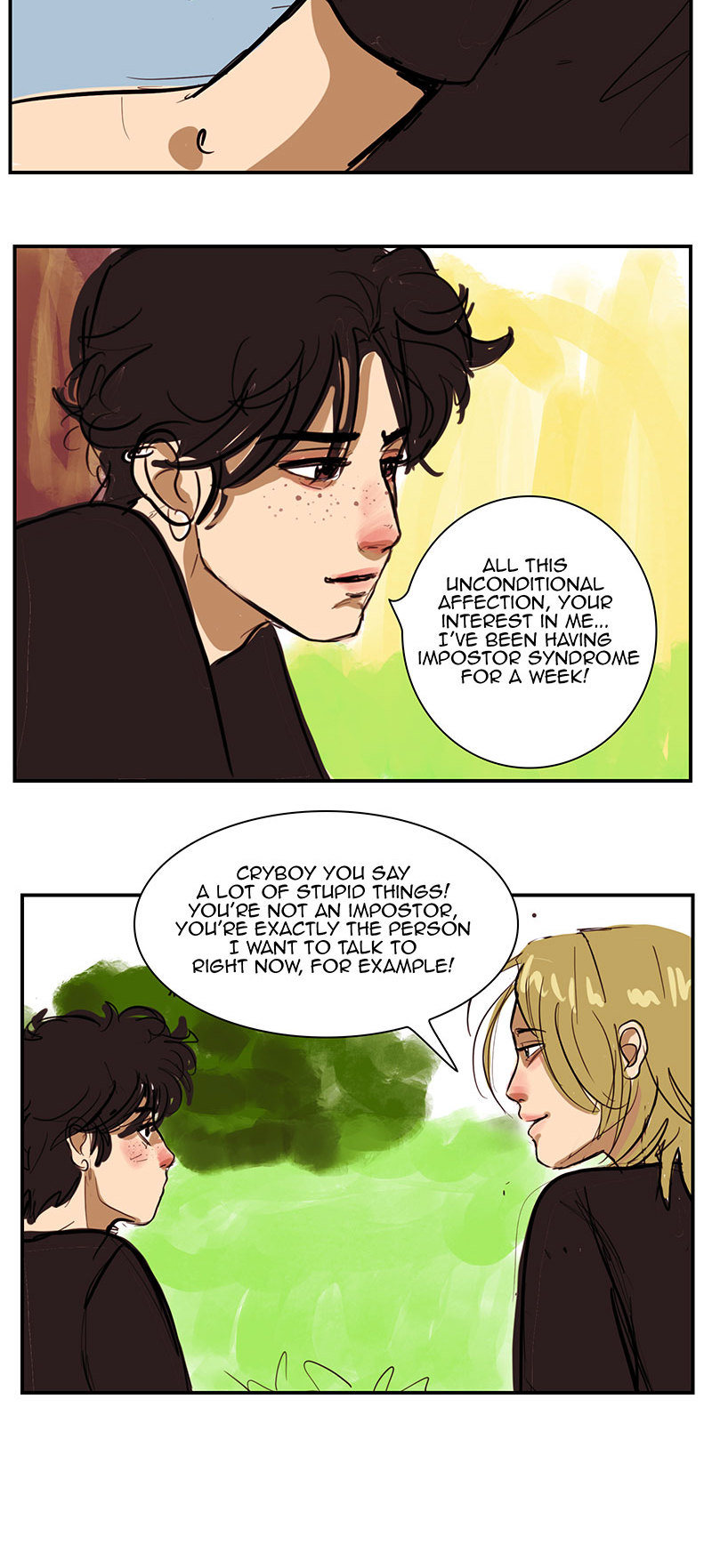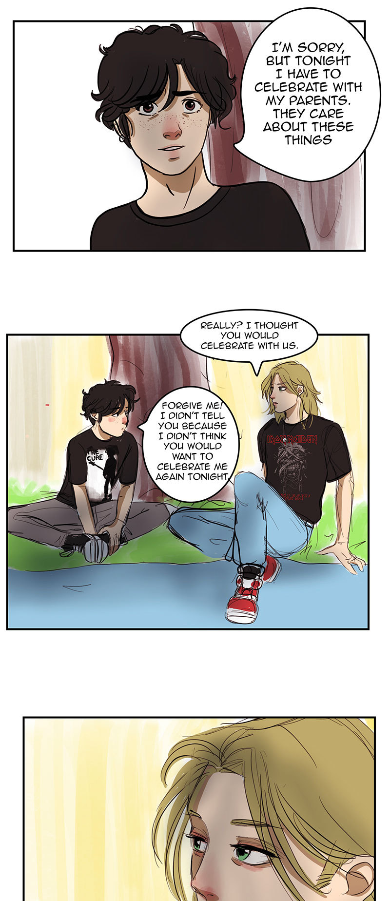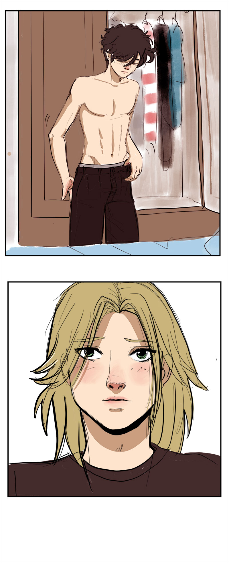 Happy New Year!! Here we are again with Ruben's birthday. The friends are leaving, and finally he and Joel are alone. Ruben opens up to him a bit more... in every sense. And we have a slightly different perspective, Joel's perspective... What do you think he's thinking as he watches Ruben get dressed? Place your bets! ppy New Year my dears!