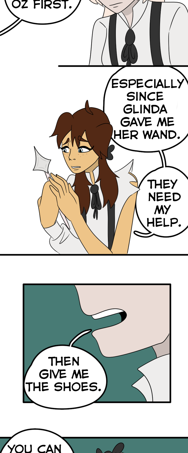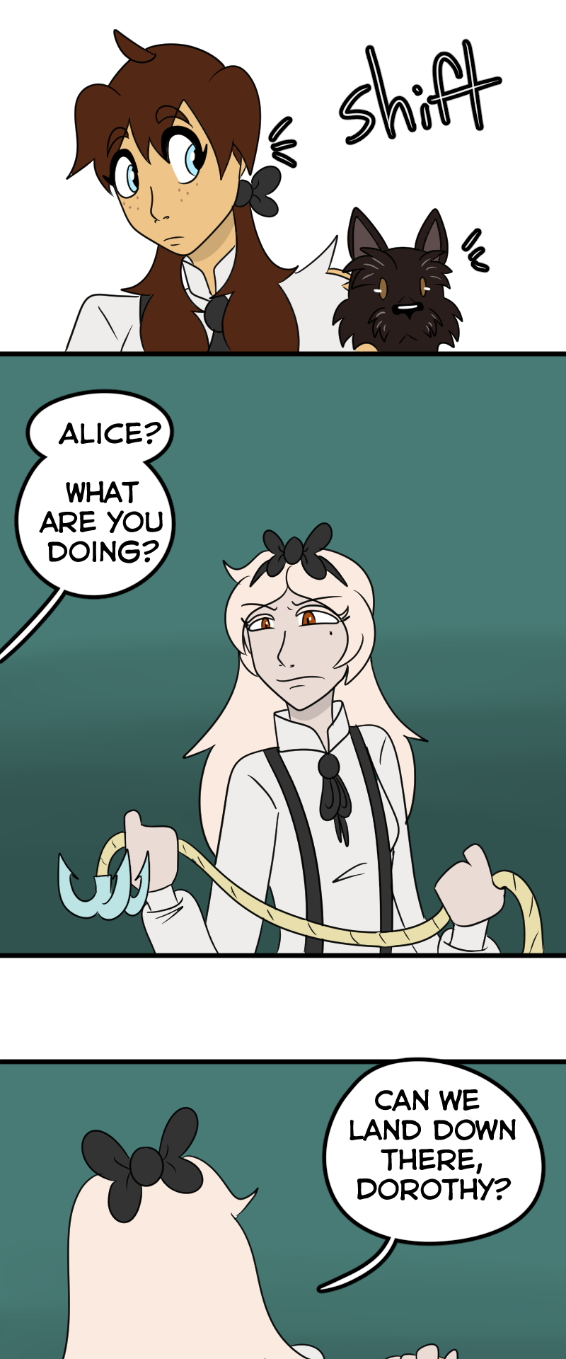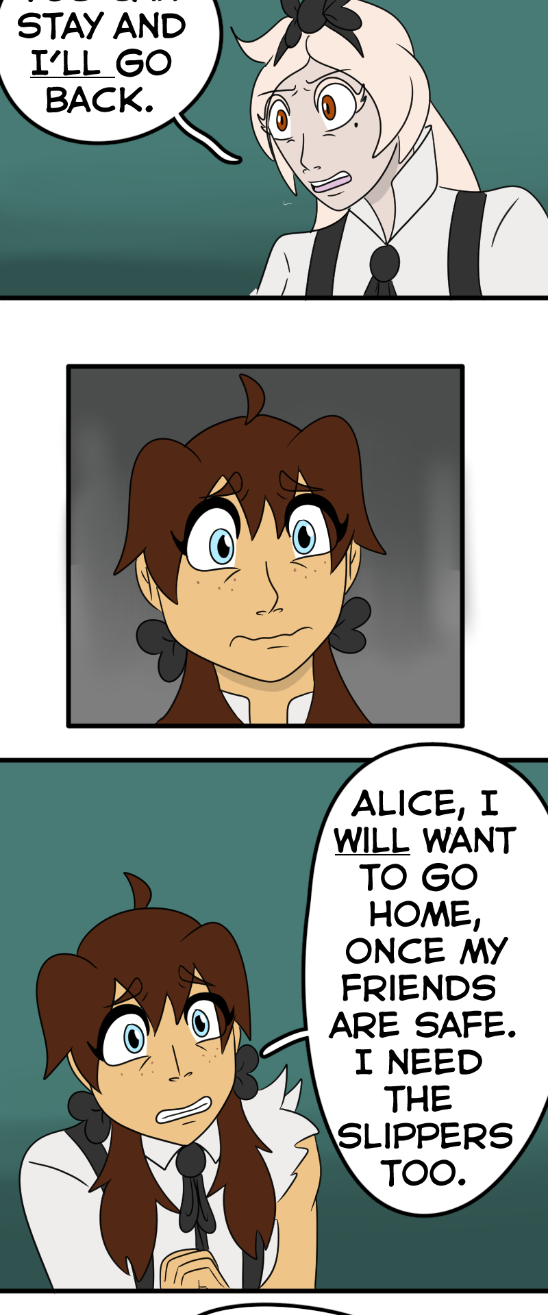 NOOO Alice wants to go home but Dorothy wants to make sure her friends are safe😭! I understand both of their perspectives, and poor Alice having the realization that Wonderland was in fact real and that she wasn’t crazy the whole time💔. This story and its characters are just MWAH!