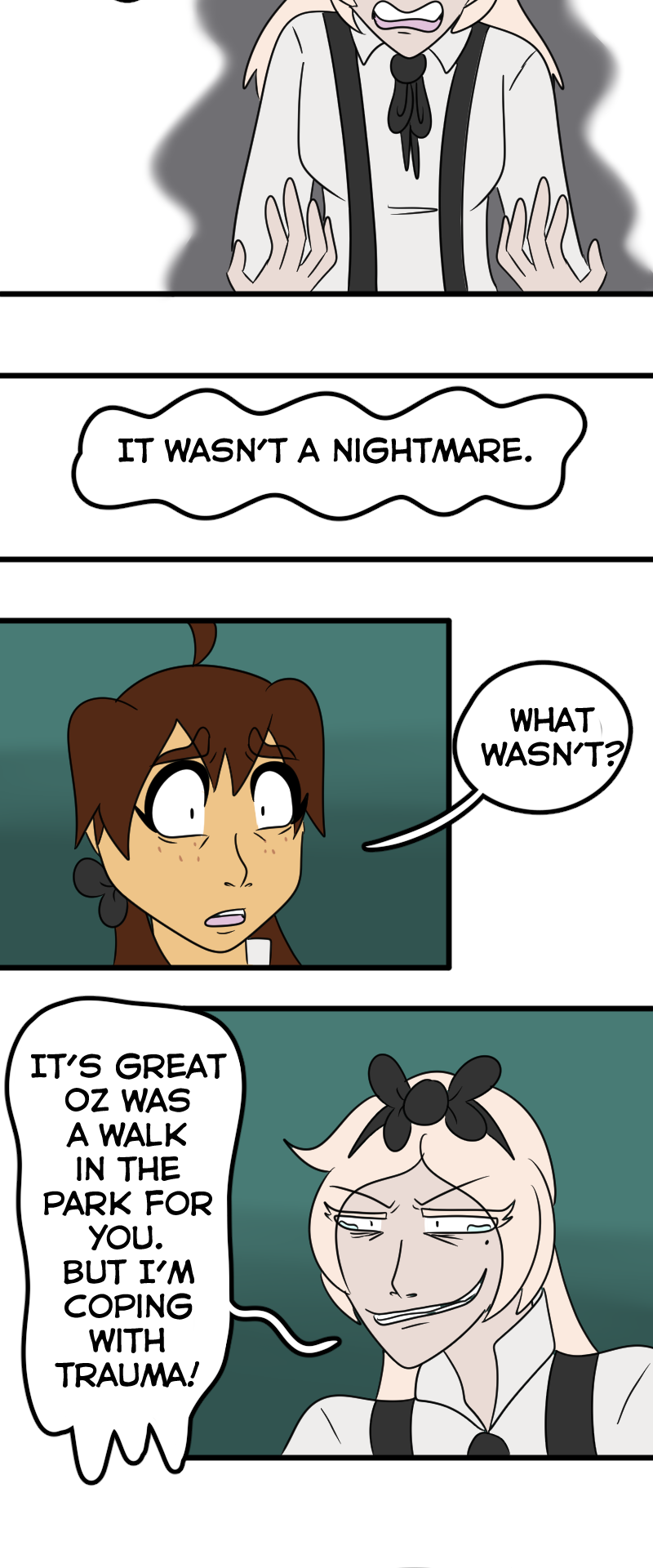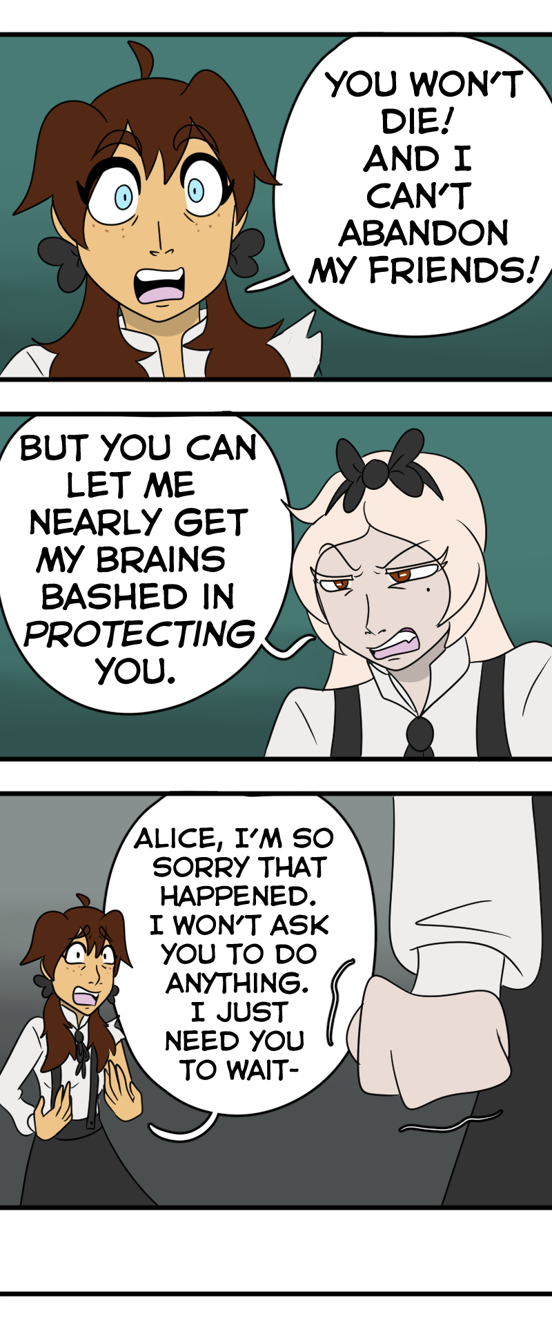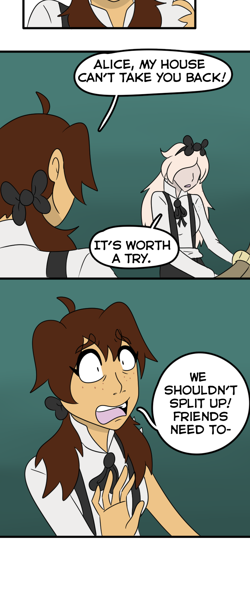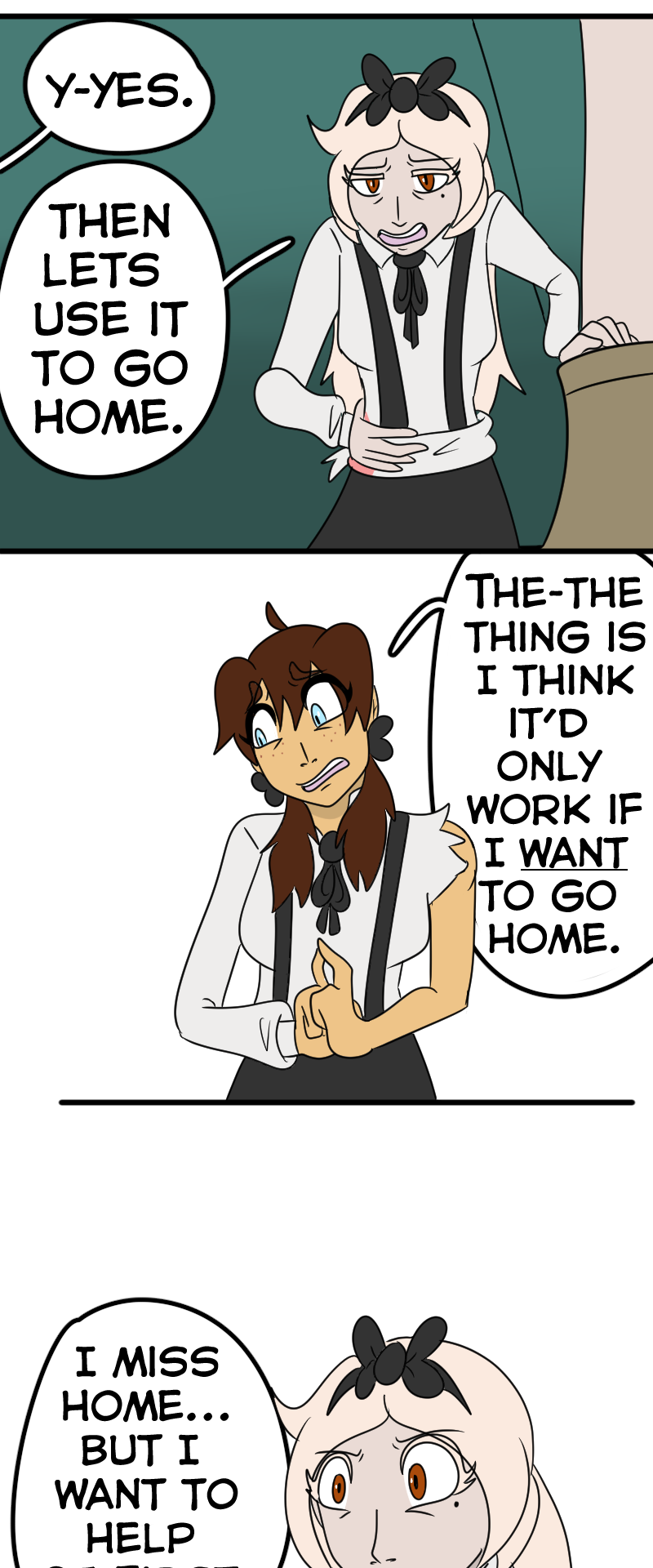 NOOO Alice wants to go home but Dorothy wants to make sure her friends are safe😭! I understand both of their perspectives, and poor Alice having the realization that Wonderland was in fact real and that she wasn’t crazy the whole time💔. This story and its characters are just MWAH!