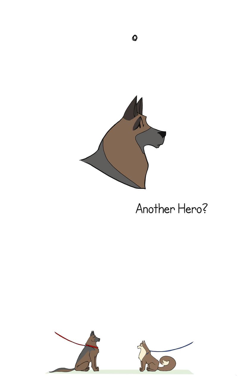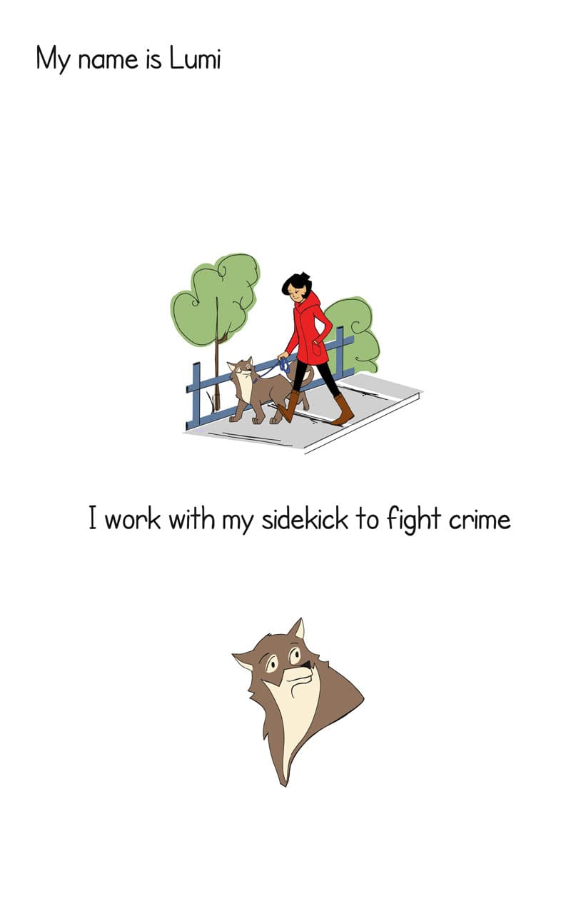 Lumi takes his sidekick for a walk in the park and comes across a fellow hero.