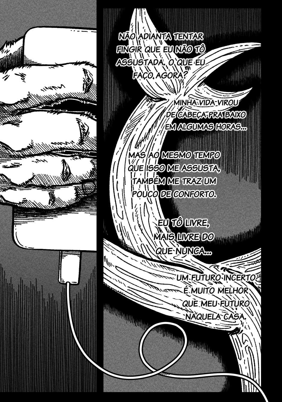 Ao fugir da casa dos pais, a personagem encontra-se em seu estado mais vulnerável. É sobre ser estranha, ser queer e ser errada; é sobre cruzar os dedos pra que a queda seja tranquila.