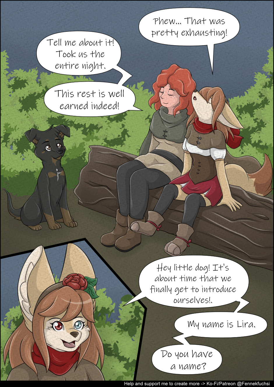 In a world where danger lurks in every shadow, a young dog named Gorou finds himself in an unfamiliar and magical realm after a vicious attack leaves him near death. Rescued by a caravan of diverse adventurers – Stormclaw the fierce Tabaxi Barbarian, Lira the charming Kitsune Bard, and Ember the spirited Human Ranger – Gorou embarks on a journey of survival, bravery, and self-discovery.