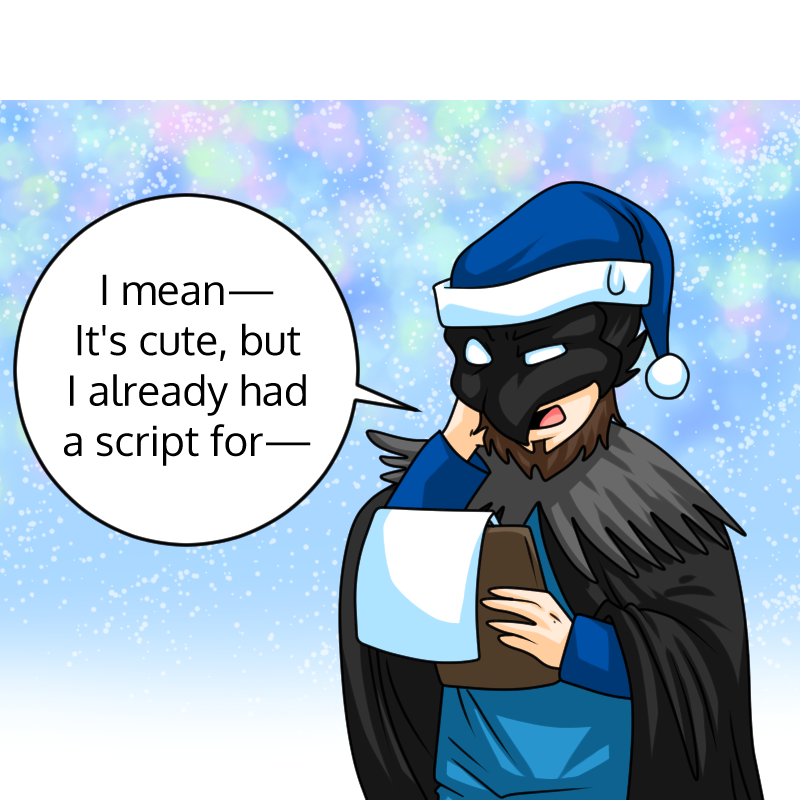 Three things of note: First, this is the first comic to have a guest writer. Second, this is the second comic to have no residents of the apartment appear in it. Third, I love Snom, but I've never scripted it into the comic. Kirby has added the cute little mon on her own three times now.