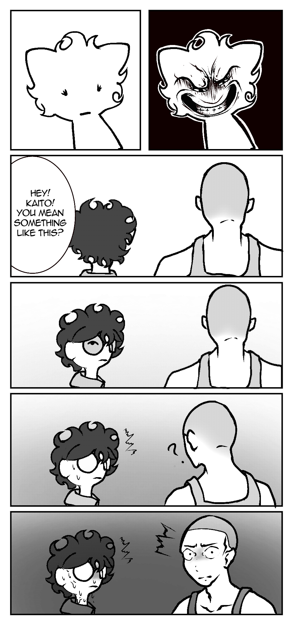 This one..took a while to make. Anyways, Kaito is off hanging out with his friend, "Daiki Yamamoto", when they both suddenly get a brain freeze! How tough! Probably get a doctor on that..