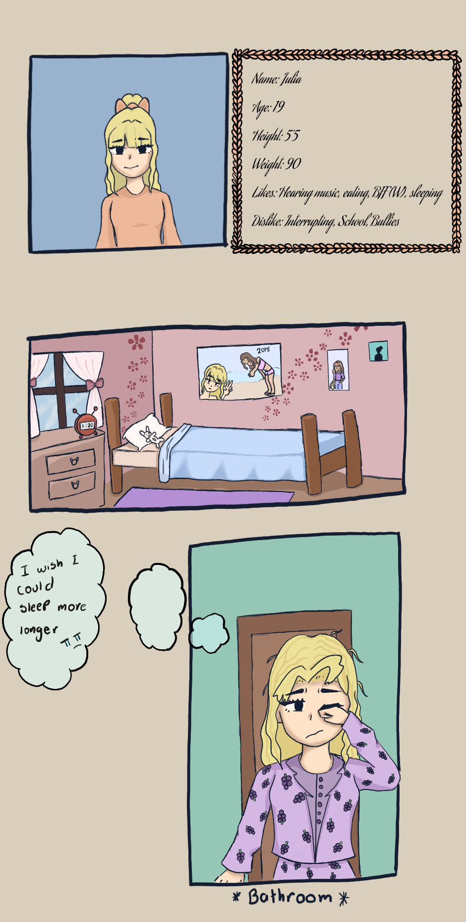 One of the girls falls in love with her bff( J ), but she doesnt know if her bff likes her back. Her bff is figuring out what's her sexuality is and questioning if she likes her bff (W). Both girls dont know that they might like eachother. End the end they would probably be ....