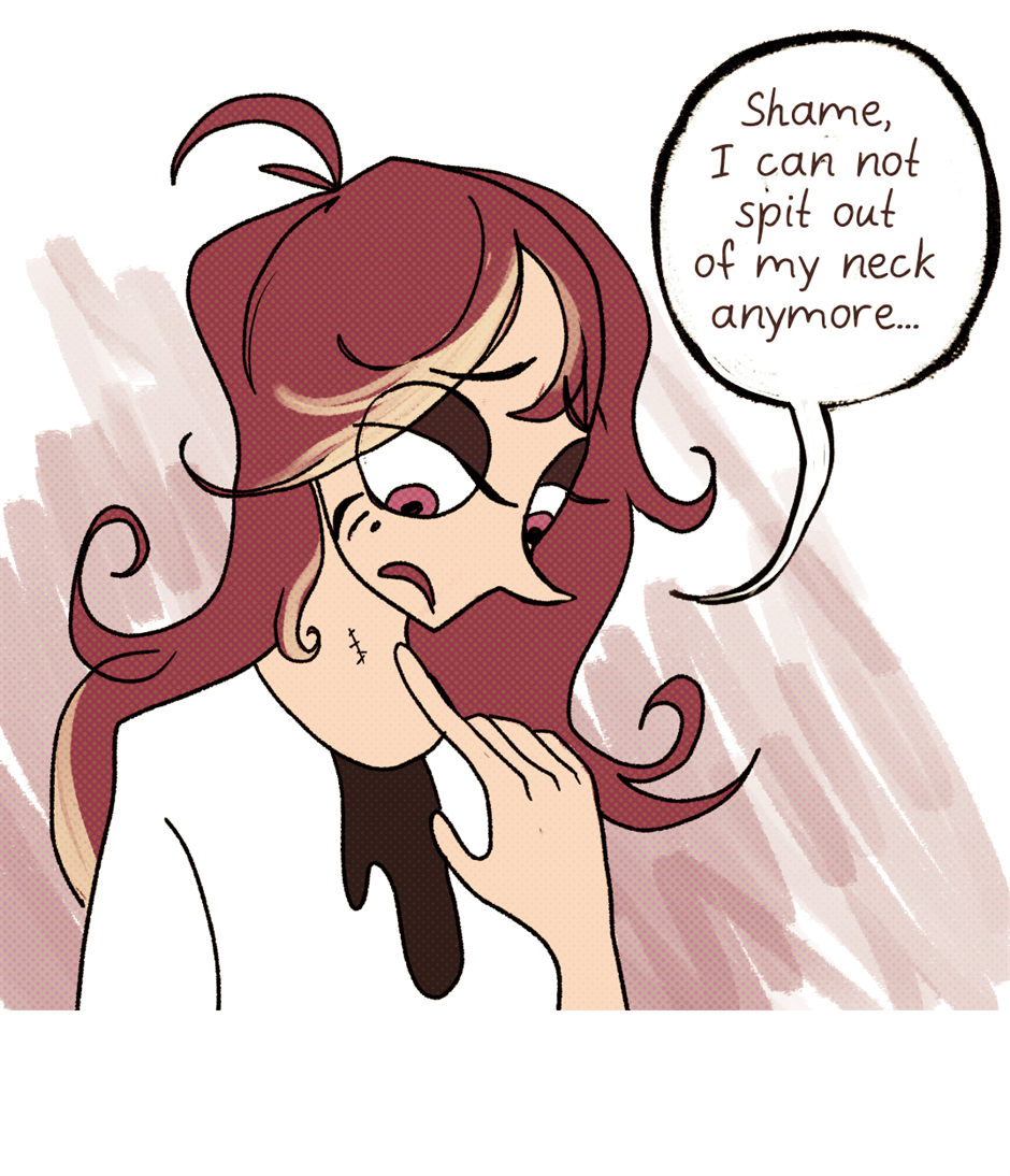 Welcome back! Is she actually sad about not being able to spit from her neck?