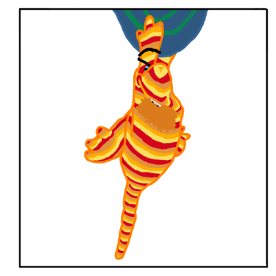 Third Panel: Mulberry is holding on to the brim of the hat as it's being lifted further.