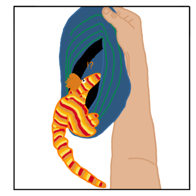 First Panel: Mulberry is curled up in the hat.