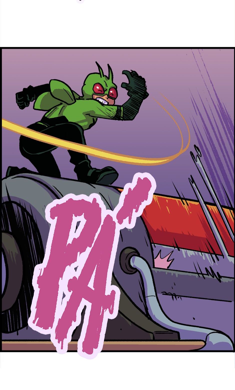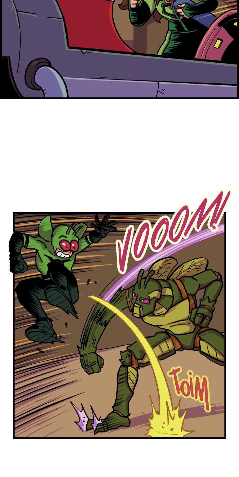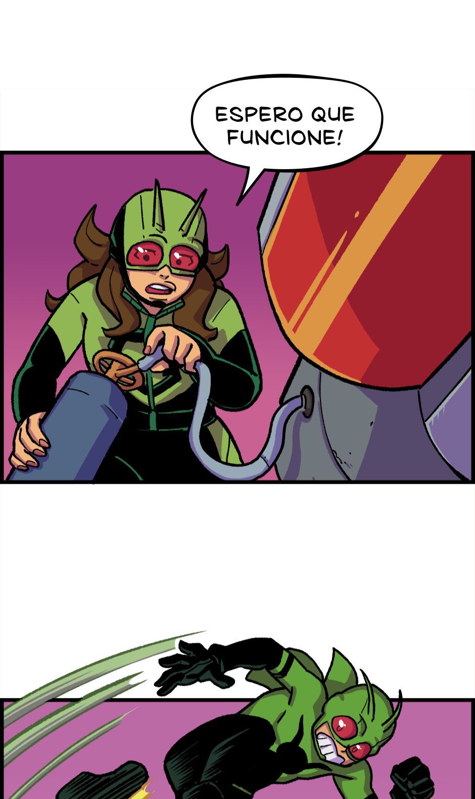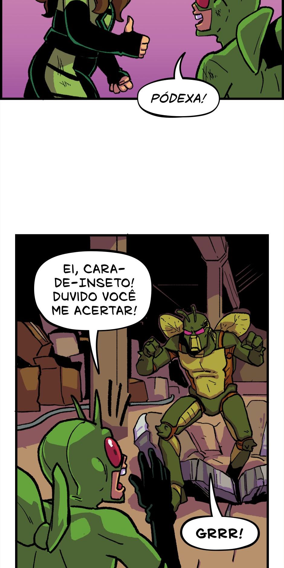 O Homem-Grilo e a Garota Cri-Cri armam um plano contra o Grilo-Humano. Roteiro e letras por Cadu Simões. Desenho e cores por Fred Hildebrand.