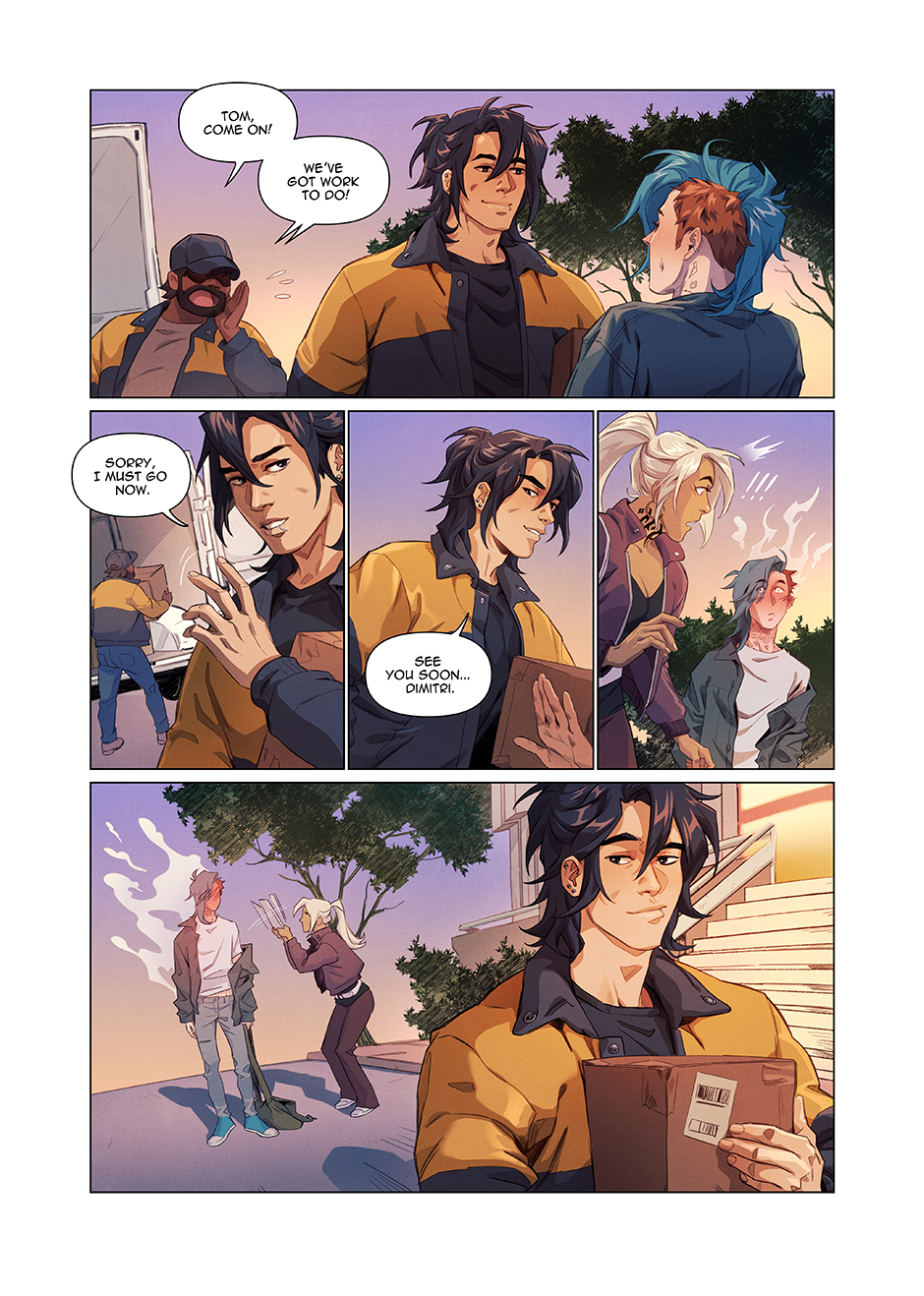 During one of his first deliveries he meets Dimitri, a sharp boy with addiction problems, who is immediately attracted to Tom and his strange accent.