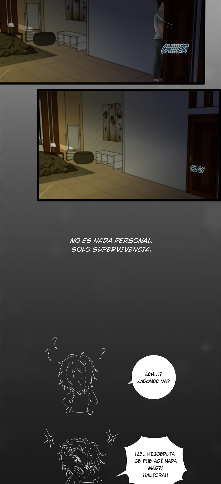 ---Como es mi primer proyecto, empieza feo, pero los diseños y estilo de trabajo irán cambiando y mejorando capítulo a capítulo hasta que me adapte y me conforme, soy muy autoexigente. Disfrutaré del proceso mientras lloro.