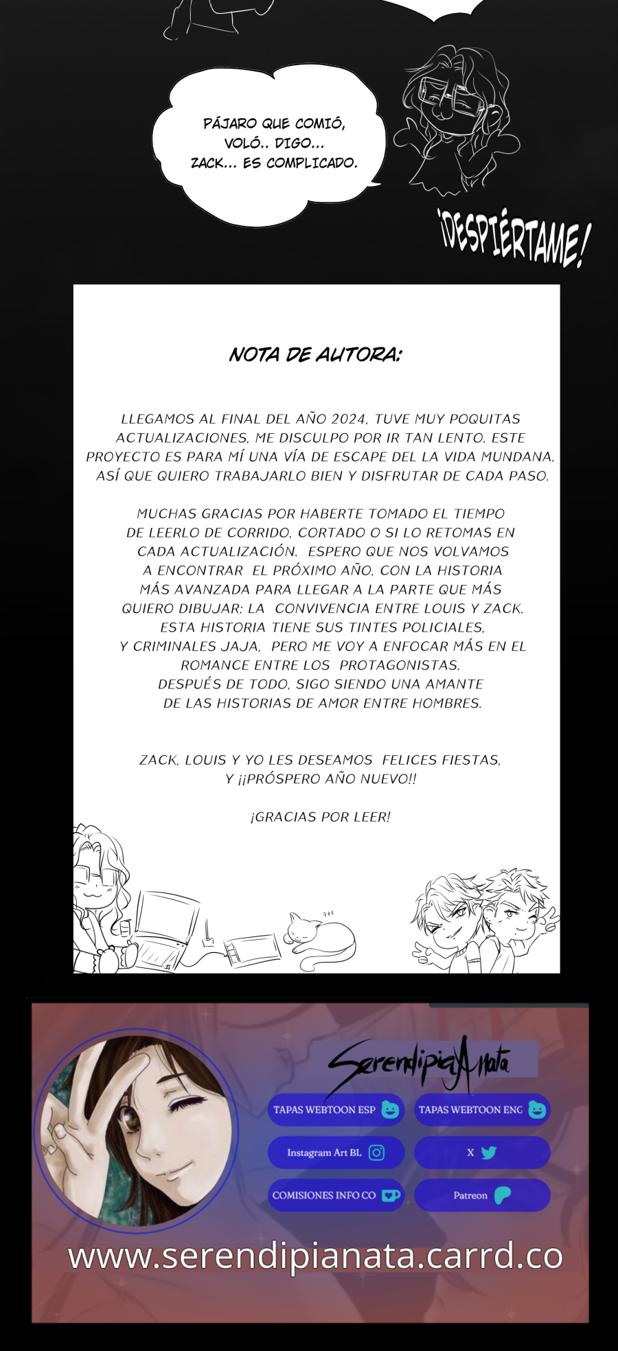 Si algún día gustas puedes pasarte por mi Patreon para disfrutar los capítulos sin censura y ver otras cositas que subo del webtoon y demás yerbas eres muy bienvenidx.