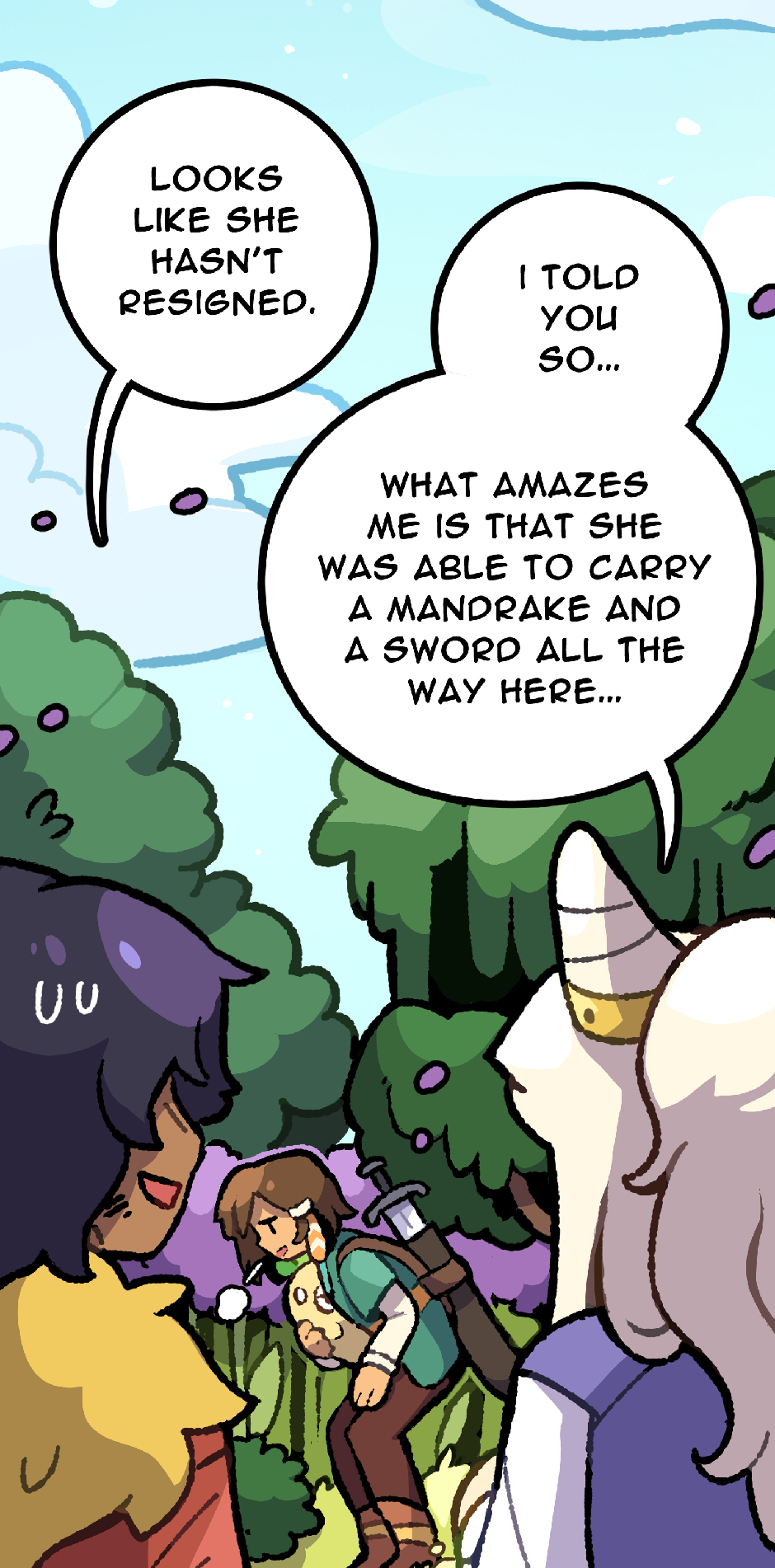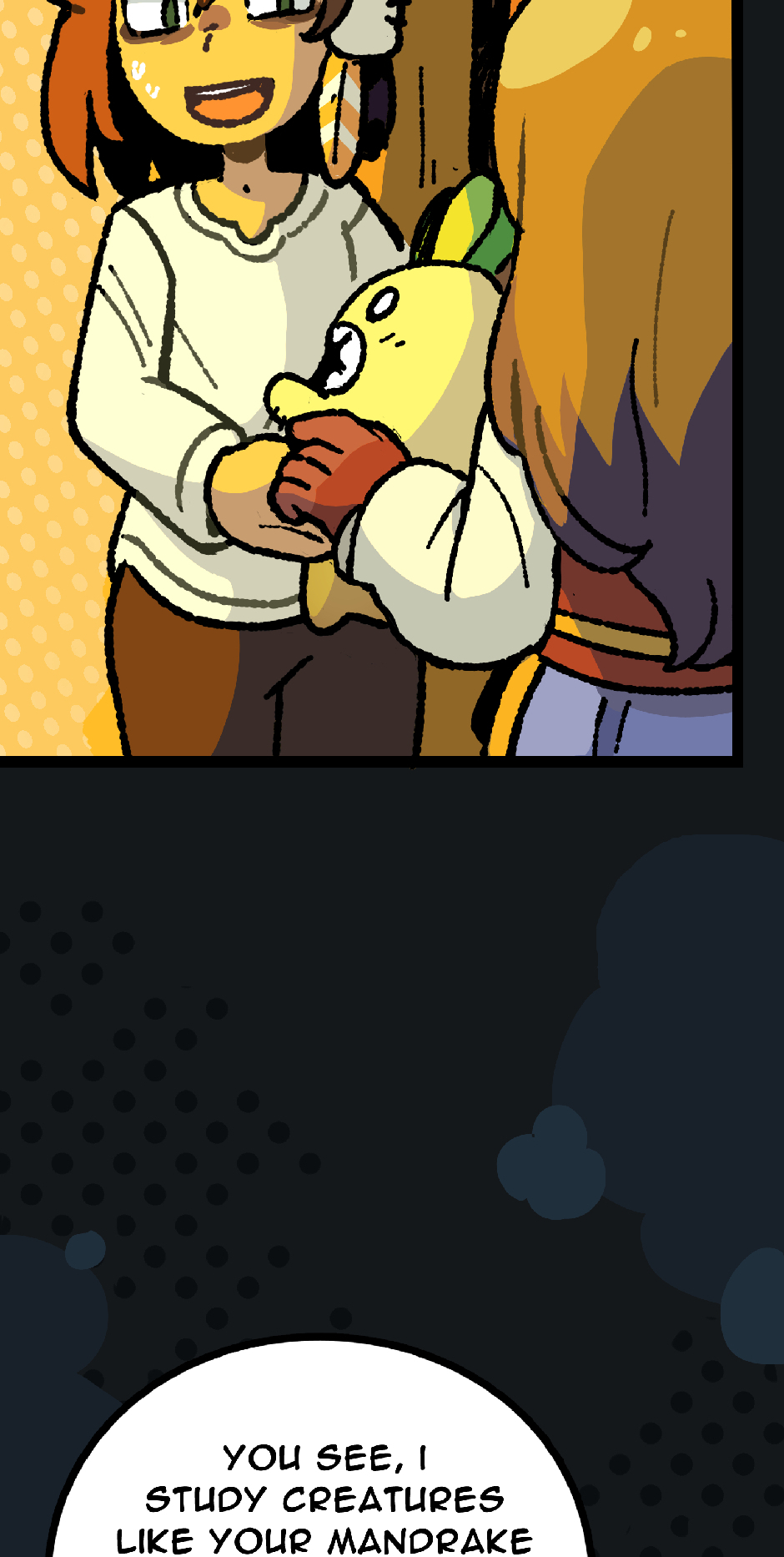 Wonder whether lil’ turnip’ll be named once Jade accepts it. Or maybe the witch’ll name it because Jade’s too stubborn. Now that i think about it, i wonder what an adult mandrake looks like, and whether planting lil’ turnip’ll become a plot point.