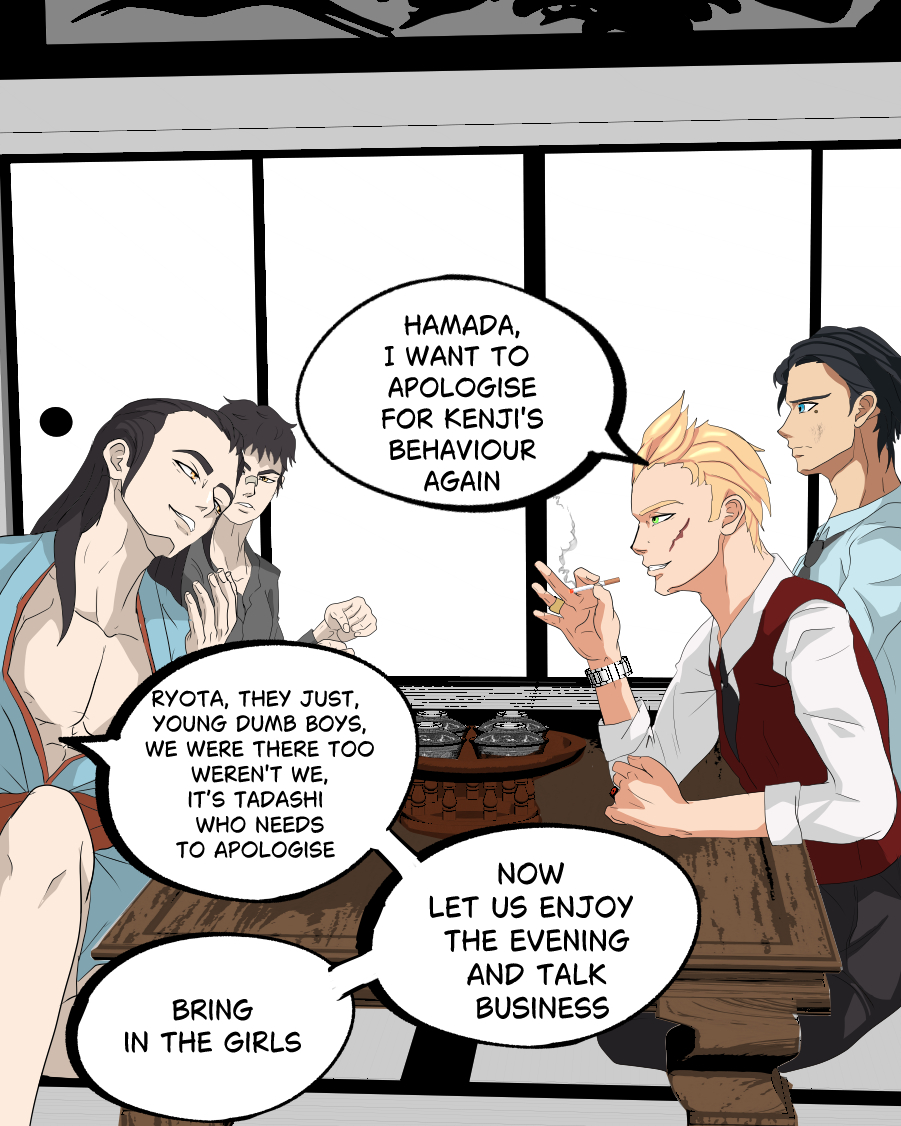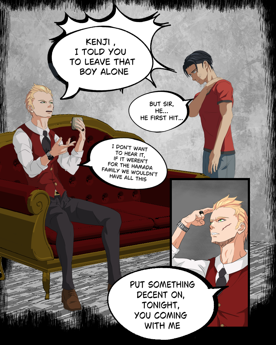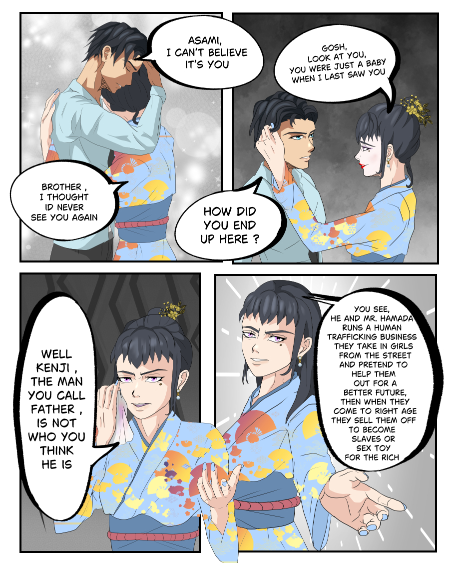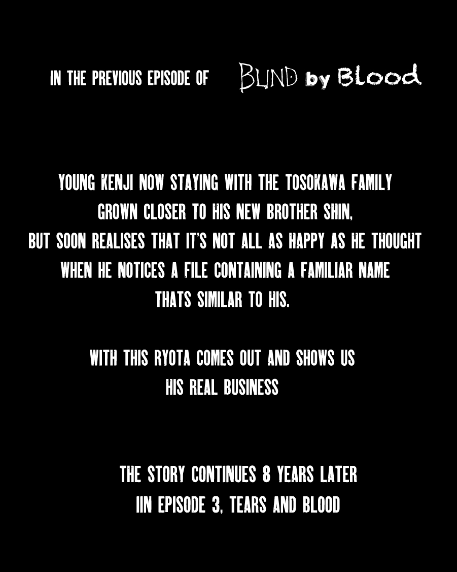 Blind by Blood, is about a boy named “ Kenji “who came from a tough life, living most of his life on the streets and got taken in by a well-known gangster family, the “ Tosokawa “ family, he grew up with his stepbrother “ Shin, but neither less Kenji didn't know that the leader of the Tosokawa gang “ Ryota “ was just using him and training him to do all Shins dirty work and to protect him. However, there are other secrets Ryota is hiding from the family that Kenji will soon discover about Ryotas's real business and his own family that got involved with Ryota.
