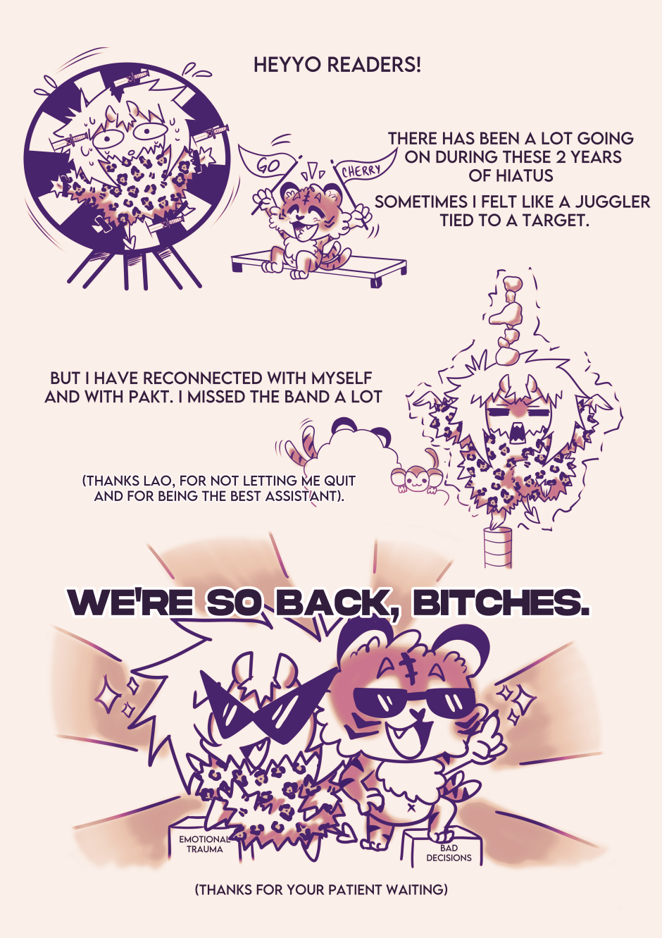 After a long time, we are happy to confidently say that WE ARE BACK to continue with our webcomic and the adventures of PAKT! Please keep supporting this intrepid band and don't forget to subscribe to the webcomic!