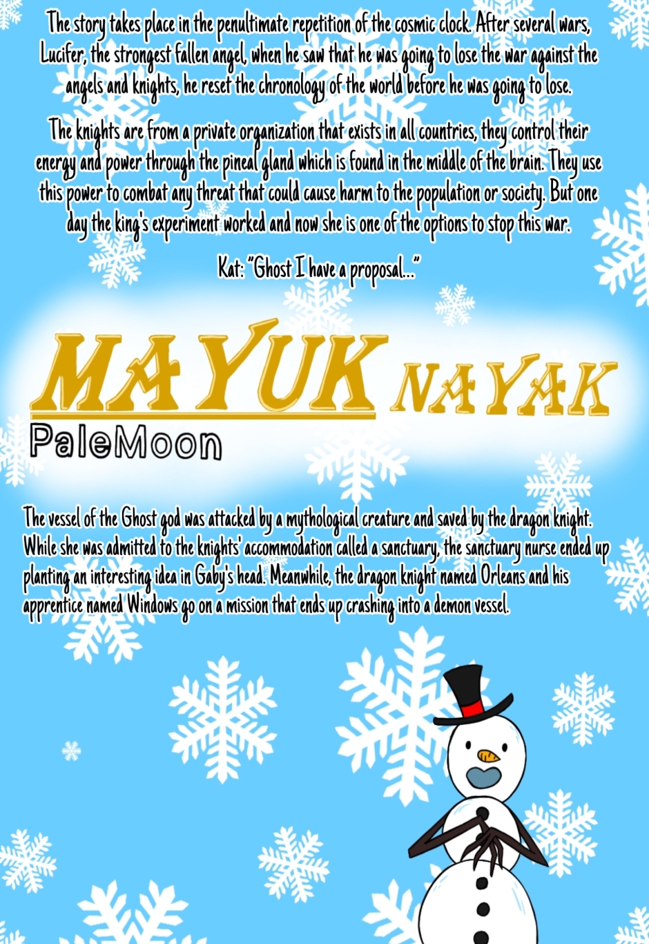 The story takes place during the penultimate cycle of the cosmic clock. After countless wars, Lucifer, the strongest fallen angel, would reset the world’s timeline whenever he saw himself losing the war against the angels and knights, ensuring he avoided defeat.