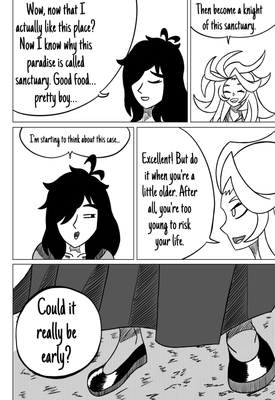 The vessel of the Ghost god was attacked by a mythological creature and saved by the dragon knight. While she was admitted to the knights’ accommodation called a sanctuary, the sanctuary nurse ended up planting an interesting idea in Gaby’s head. Meanwhile, the dragon knight named Orleans and his apprentice named Windows go on a mission that ends up crashing into a demon vessel.