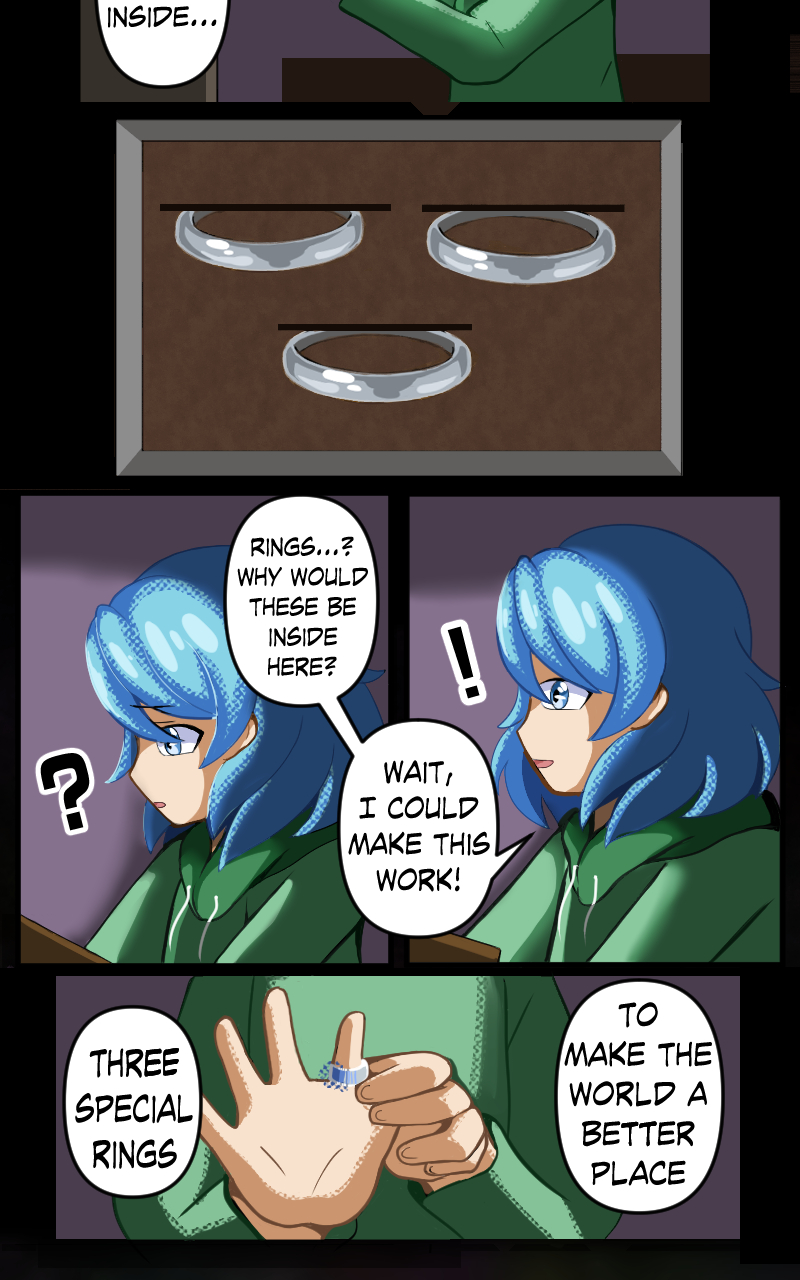 A young writer with big ambitions, Emi searches for inspiration and finds it in the form of three rings. Years later, she has lost her ambitions and refused to wear her ring for several years... That is until she has to use the power of the rings to stop the monochrome, shape shifting creatures who aim to replace people with 'ideal versions' of themselves. Together with Maya, Daigo and Aoi, they secretly plan to stop the monochrome under the disguise of a school club.