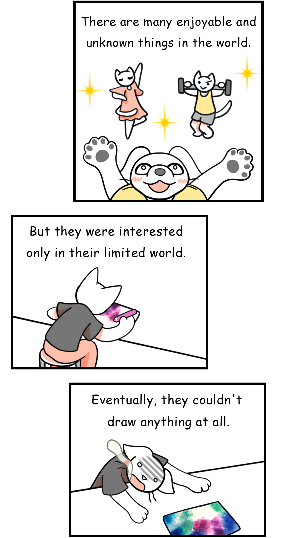 That's great advice! Fortunately my life keeps me pretty busy in general but I totally understand the temptation to just draw and never go outside. So much art to do, so little time!
