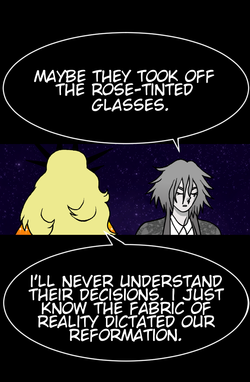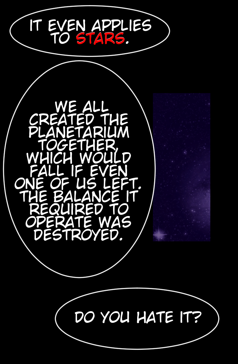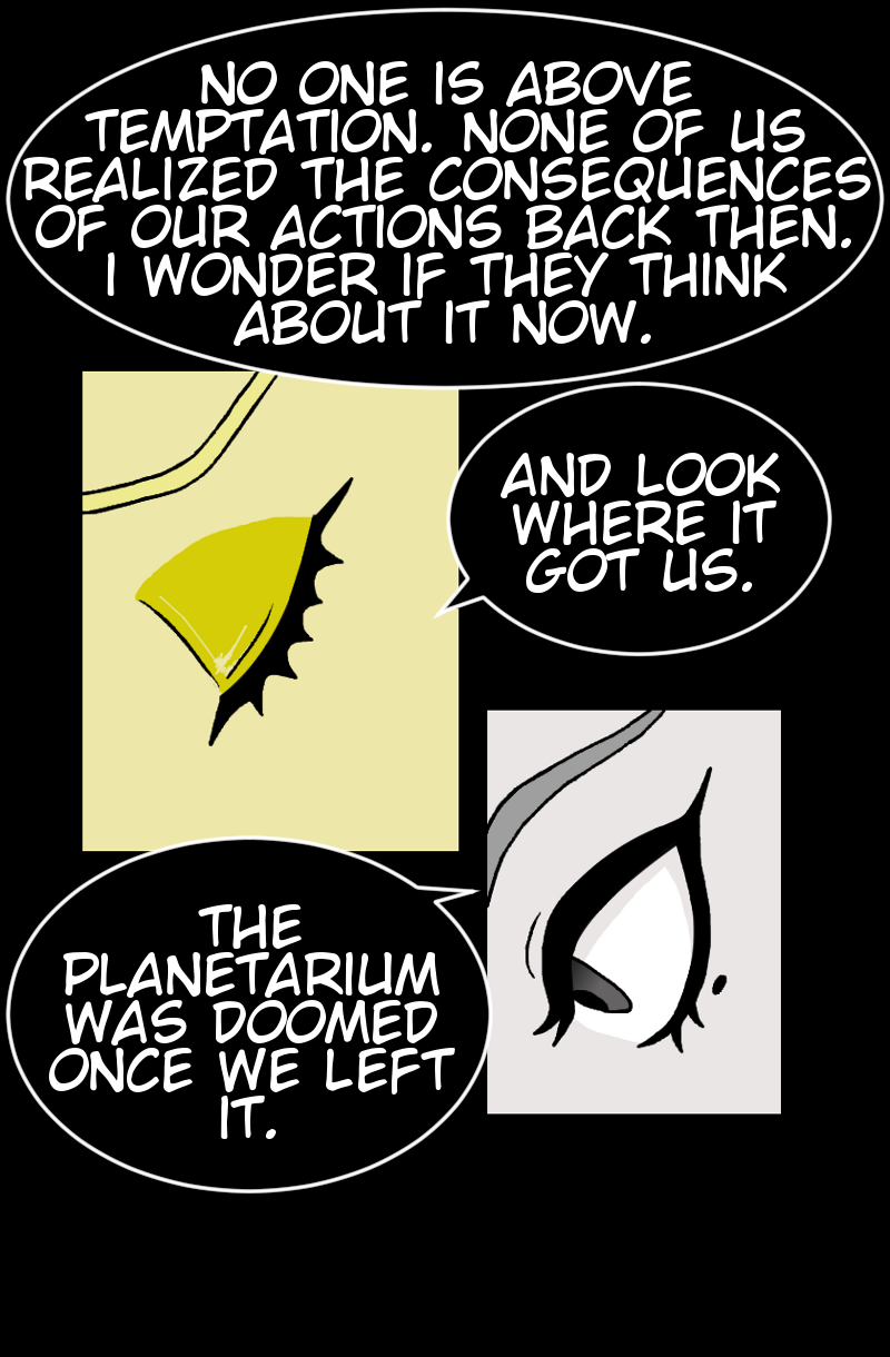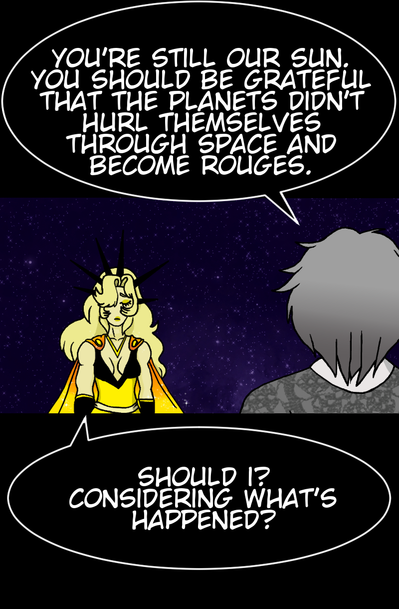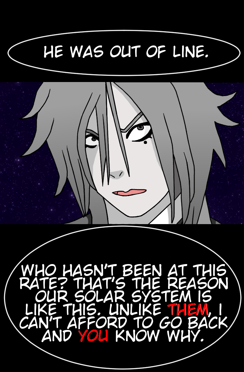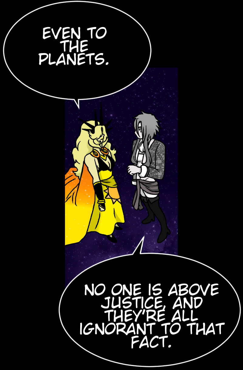 A solar system is a fragile balance. If one planet spins out of control, the others suffer. So, when Mercury falls, it's up to Earth and the other planets to fix the balance or destroy themselves in the process. The shadows of truth come out and their reflections warp as the truth to Mercury's fall comes out.