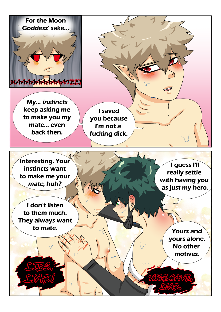 Katsuki's out hunting one fateful night when he is witness to a freckled, beat up, dying human being dumped and abandoned in the middle of the sea. Despite his initial reluctance, upon realizing the human still lives, Katsuki's alpha is very clear: Save him, do everything you can.