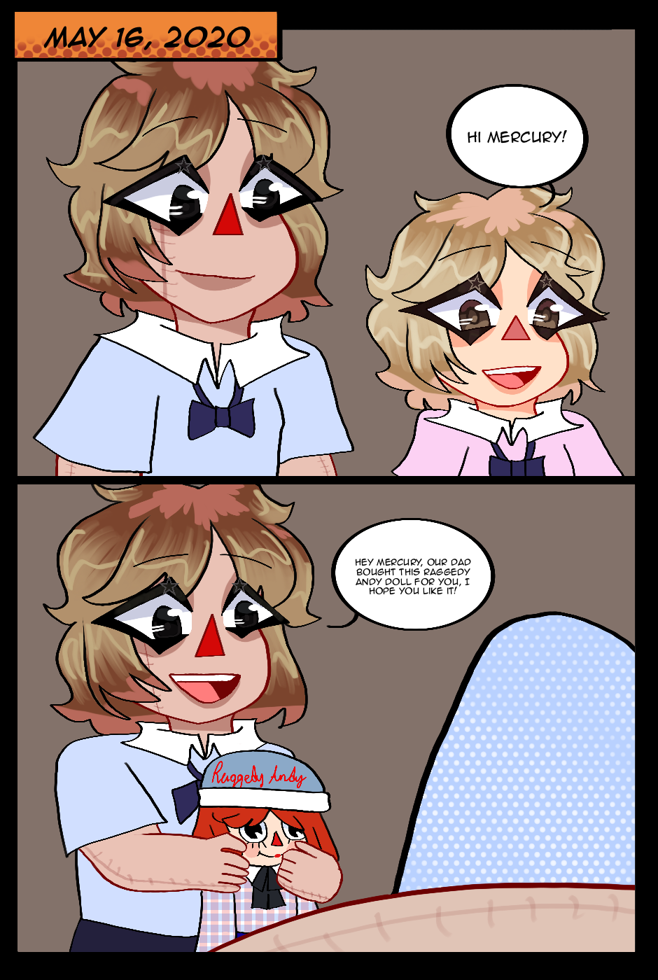 After Gregory’s online school was ended, Angelica and her brother saw the Raggedy Andy doll from the box. They have a picture that’s for their new sibling Mercury Reid.