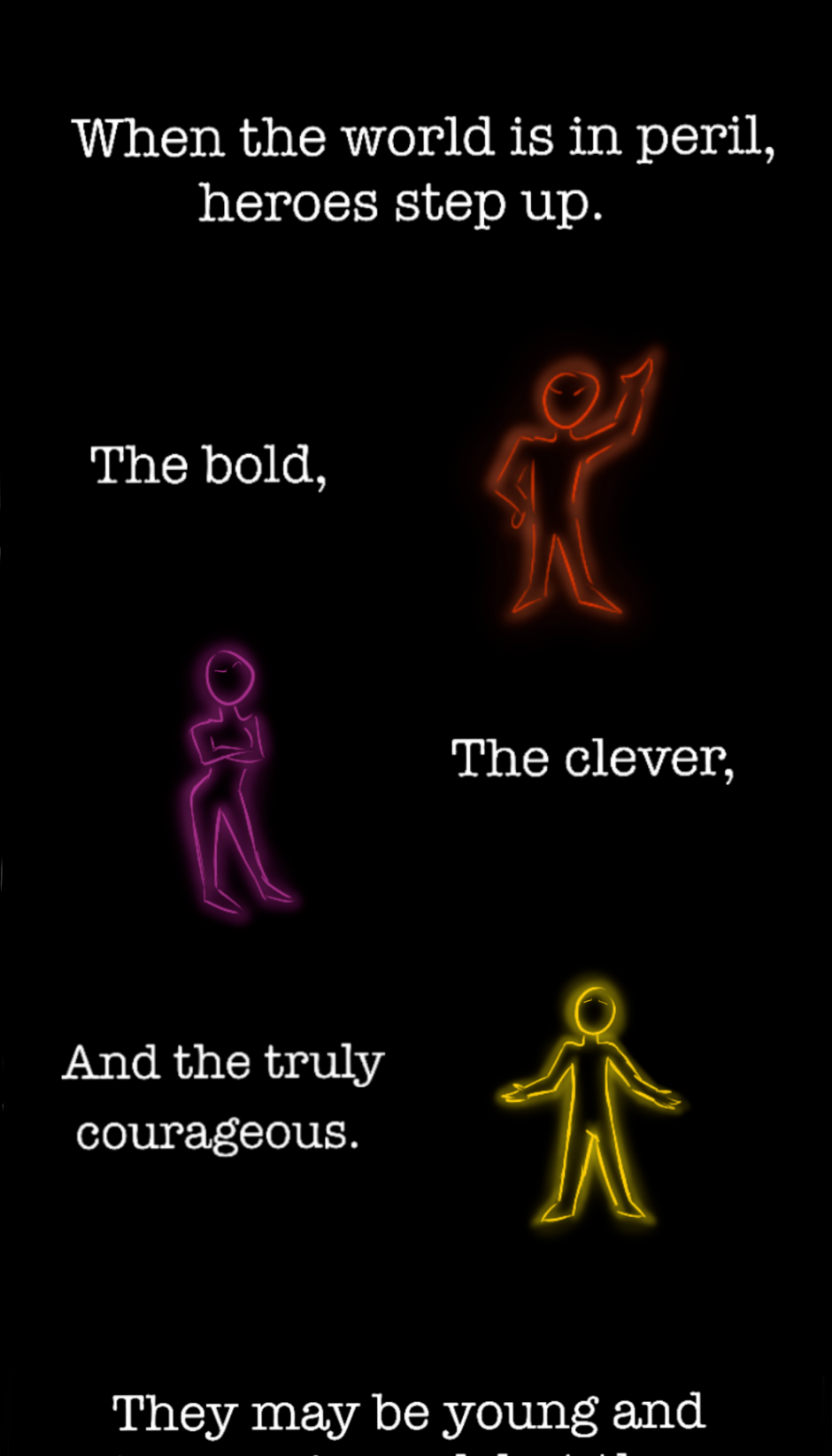 In a world of magic super-powers it's up to a trio of teenage heroes to save the day. We have the bright eyed chosen one, the sardonic former villain, and the responsible voice of reason. You know the types. Archetypical Adventure is a spoof/genuine love letter to the action/adventure cartoons I grew up watching, playing with and exploring the different tropes of the genre.