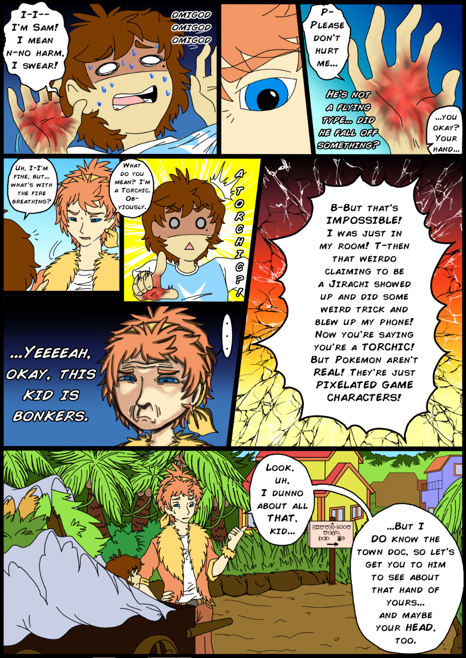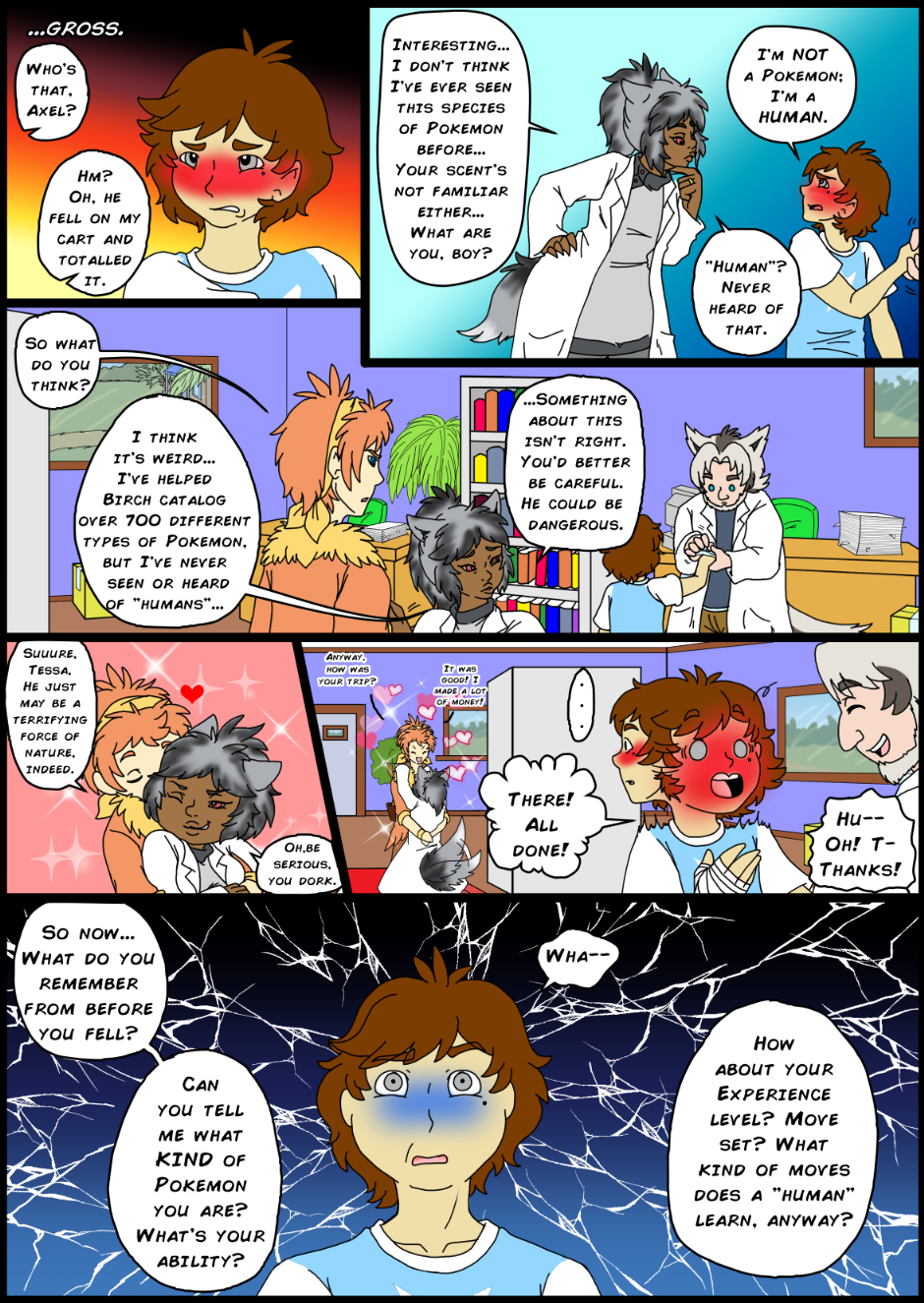 Sam is a 14-year-old human boy who accidentally makes a wish and ends up in the Pokemon world. Sounds trite, right? Well, it's not quite what he expected; the Pokemon are actually GIJINKAS! What's more, humans don't exist in this world, and everyone believes Sam is some sort of rare Pokemon, too! Now Sam must find a way back home, all while under the ever present eye of an evil demi-god who has plans of his own...