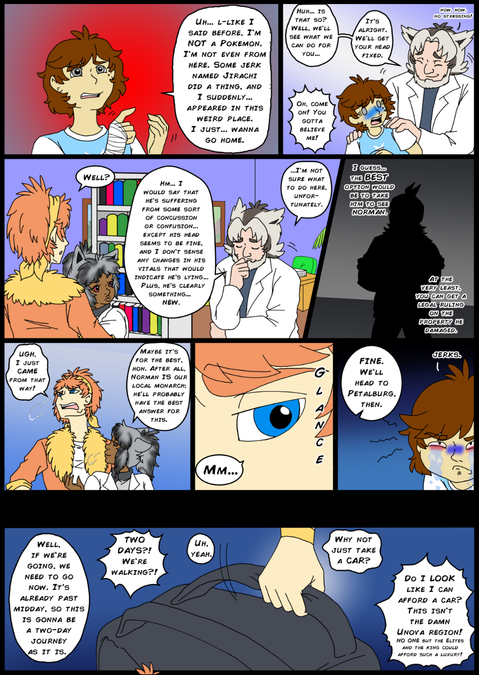Sam is a 14-year-old human boy who accidentally makes a wish and ends up in the Pokemon world. Sounds trite, right? Well, it's not quite what he expected; the Pokemon are actually GIJINKAS! What's more, humans don't exist in this world, and everyone believes Sam is some sort of rare Pokemon, too! Now Sam must find a way back home, all while under the ever present eye of an evil demi-god who has plans of his own...