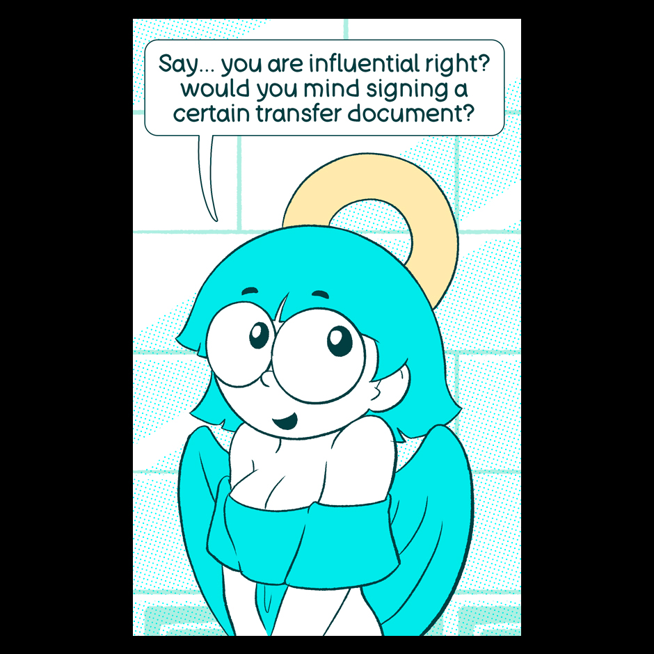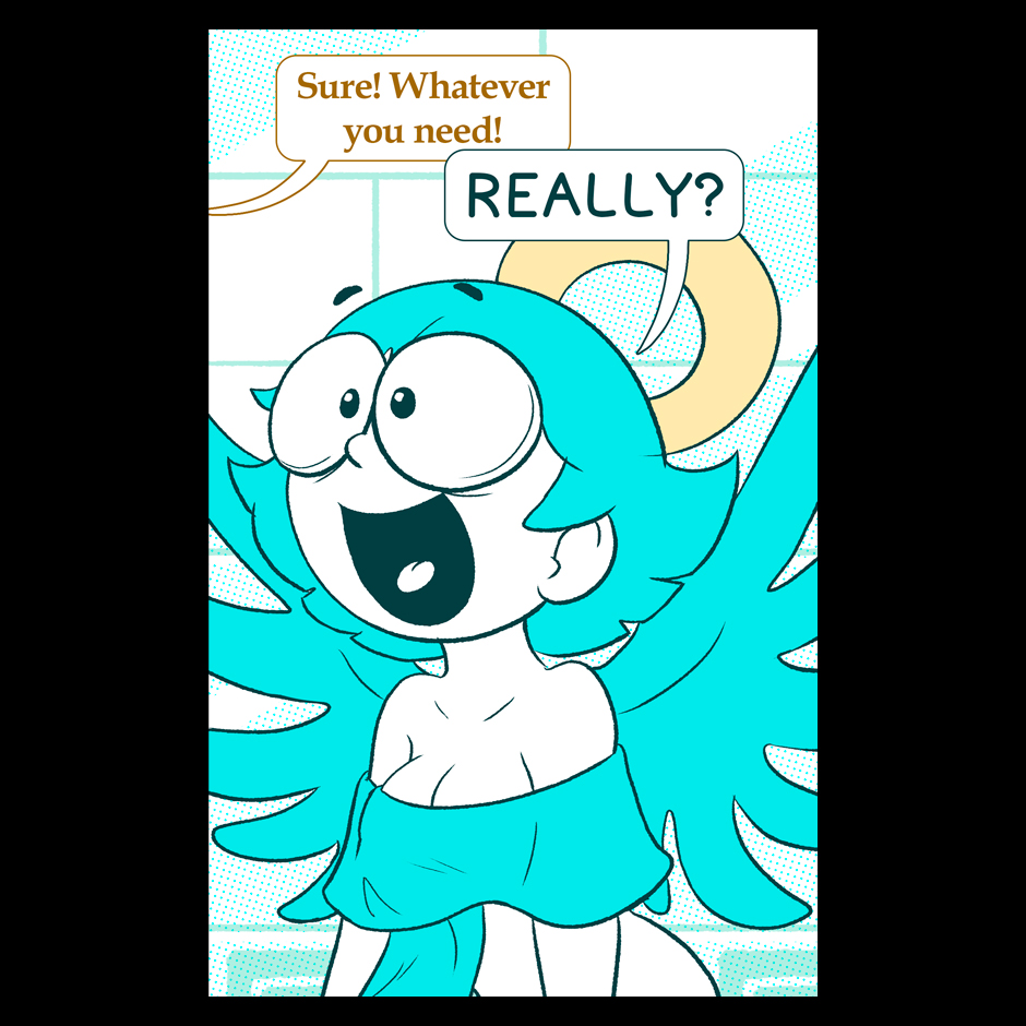 The next guest artist is an old friend who is launching a new comic project. You can check it out here at Tapas, too: https://tapas.io/series/MyDeadBody . CHECK IT OUT! (Seems like Noobie cant avoid getting abused even if her boss is not here)