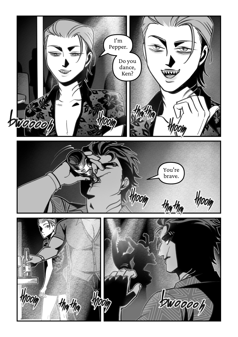 Ken's tongue is not silver, but his body is steel. He understands Pepper from the very moment he meets him, but he can never tell him why. Still, he lets the boy get dangerously close, actively risking the fragile safety he bought with his own blood.
