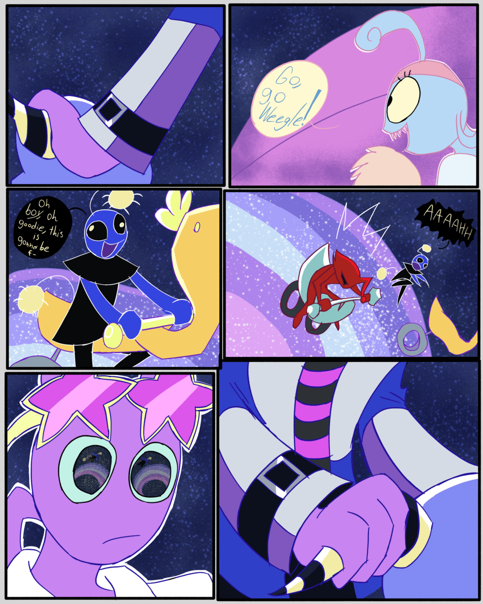Weegle can't ride a zike, but Reena and elvin can. Now, elvin and Reena decide to teach weegle, but he's gonna have to wear a pod helmet (for newbie zikers) and without consent, elvin entered weegle in a zike racing tournament, and if he doesn't win, he will never ever be able to join any other racing tournament again, not that he cares, like at all.